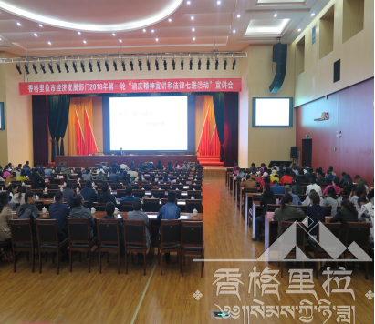 市2018年第一轮“迪庆精神宣讲和法律七进活动”方案》的通知,为深入宣传贯彻党的十九大精神、迪庆精神、法律知识和脱贫攻坚相关政策,进一步促进脱贫攻坚、维护社会稳定,推动全市经济社会实现科学发展、跨越发展、和谐发展,结合当前我市“千促”工作实际,香格里拉市财政局牵头组织政府系统经济发展部门,于2018年5月25日下午在政府报告厅开展宣讲2018年第一轮“迪庆精神宣讲和法律七进活动。参加此次宣讲活动的单位有:市财政局、市发改局、市工信局、市交通局、市住建局、市旅发委、市林业局、市国投公司、市国土局、箐口工业园区、格咱工业园区、市水务局、市教育局、市畜牧兽医局、市文体广电局、市扶贫办、市生物创新办、市独克宗古城管理委员会、市卫计局、市环保局。