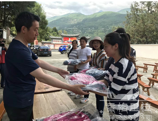 在“1、2、3,茄子.....”声中,虎跳峡桥头村委会飘荡着孩子们与爱心人士们留影时纯真的欢笑声。2018年8月中旬,助学捐赠在香格里拉虎跳峡桥头村进行, 由香格里拉市人民政府副市长、桥头村处级包村领导姜莉丽,联系原单位中国旅游集团公司旗下中国国旅集团公司,到虎跳峡桥头村开展助学捐赠活动,为全村96小学生、中学生84名、大学生25名,发放冲锋衣、保温杯、保温饭盒、文具大礼包等物品。并慰问桥头村驻村工作队及村干部。