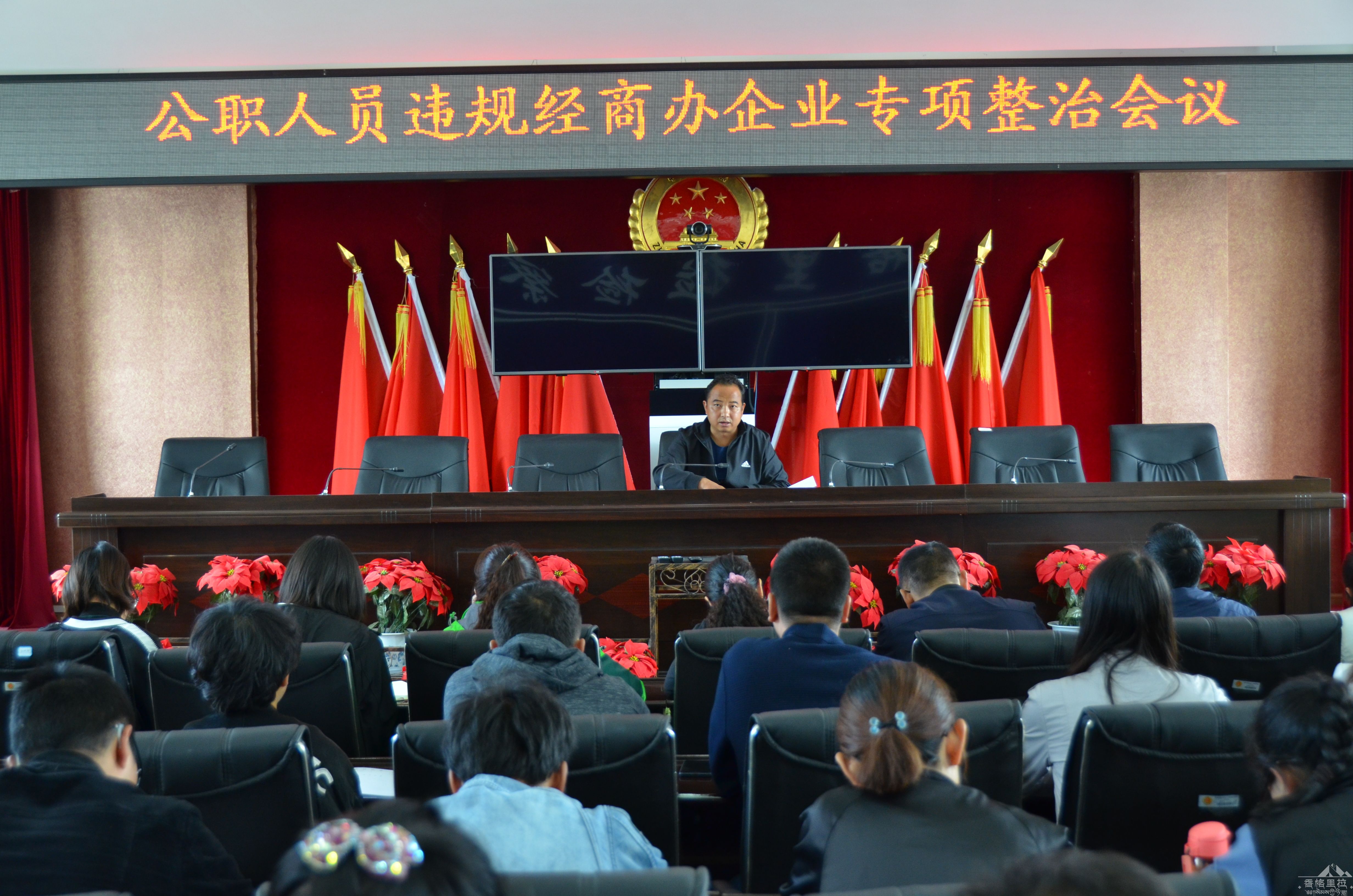 8月30日,香格里拉市人民检察院召开公务员违规经商办企业专项整治会议,会议由检察长蒋培源同志主持,全体在家干警参加了会议。