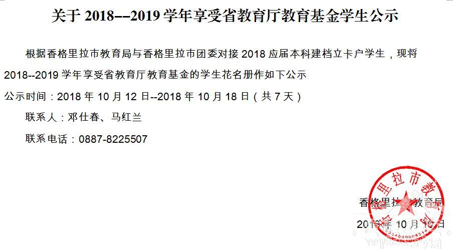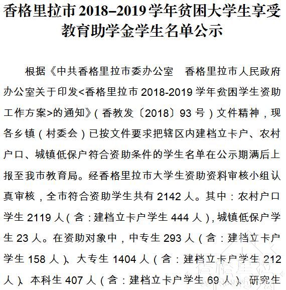【教育体育局】贫困大学生享受教育助学金名单公示