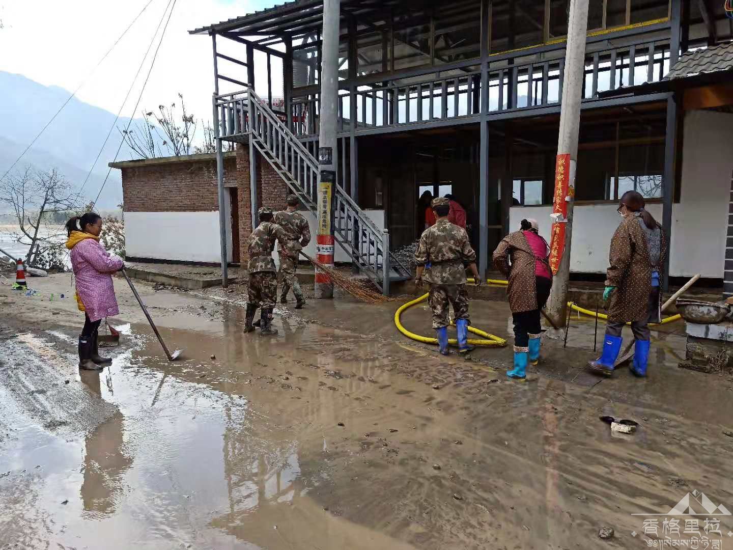 11月17日香格里拉市发改局职工来到新建村木斯扎红军渡口进行淤泥清除工作。红军渡口旁的鲍国华家是我局的挂包户,在洪灾后损失严重,房屋淤泥较多,我局职工会同部队一同将鲍国华家中淤泥清扫干净。
