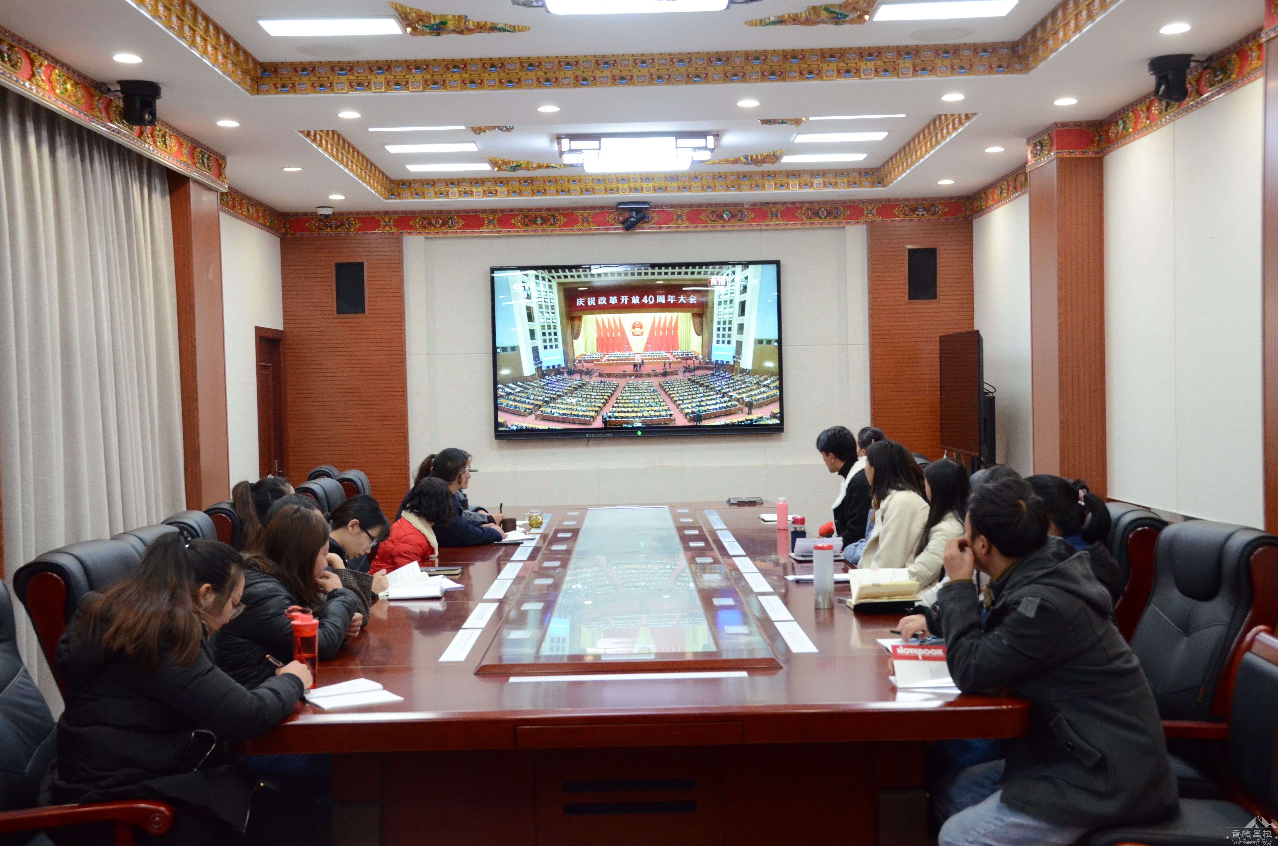12月18日上午十点,中共中央、国务院庆祝改革开放40周年大会在人民大会堂举行。香格里拉市人民检察院第一时间组织全体干警在会议室集中收看直播盛况。