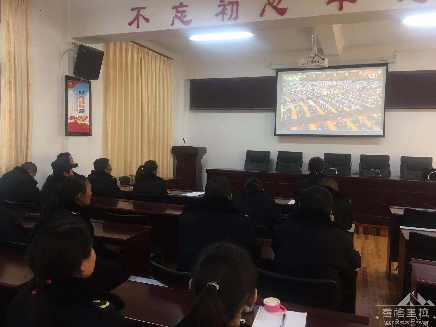 为深入学习贯彻习近平总书记重要讲话精神,动员全市各族人民在以习近平同志为核心的党中央坚强领导下,统一思想、坚定信心,不忘初心、牢记使命,将改革开放进行到底。根据《中共云南省委办公厅关于认真组织收听收看庆祝改革开放40周年大会实况的通知》(云办发电〔2018〕224号)和《中共迪庆州委办公室关于认真组织收听收看庆祝改革开放40周年大会实况的通知》(迪办发电〔2018〕163号)要求,香格里拉市综合行政执法局于12月18日上午10时组织全局干部职工观看庆祝改革开放40周年大会。
