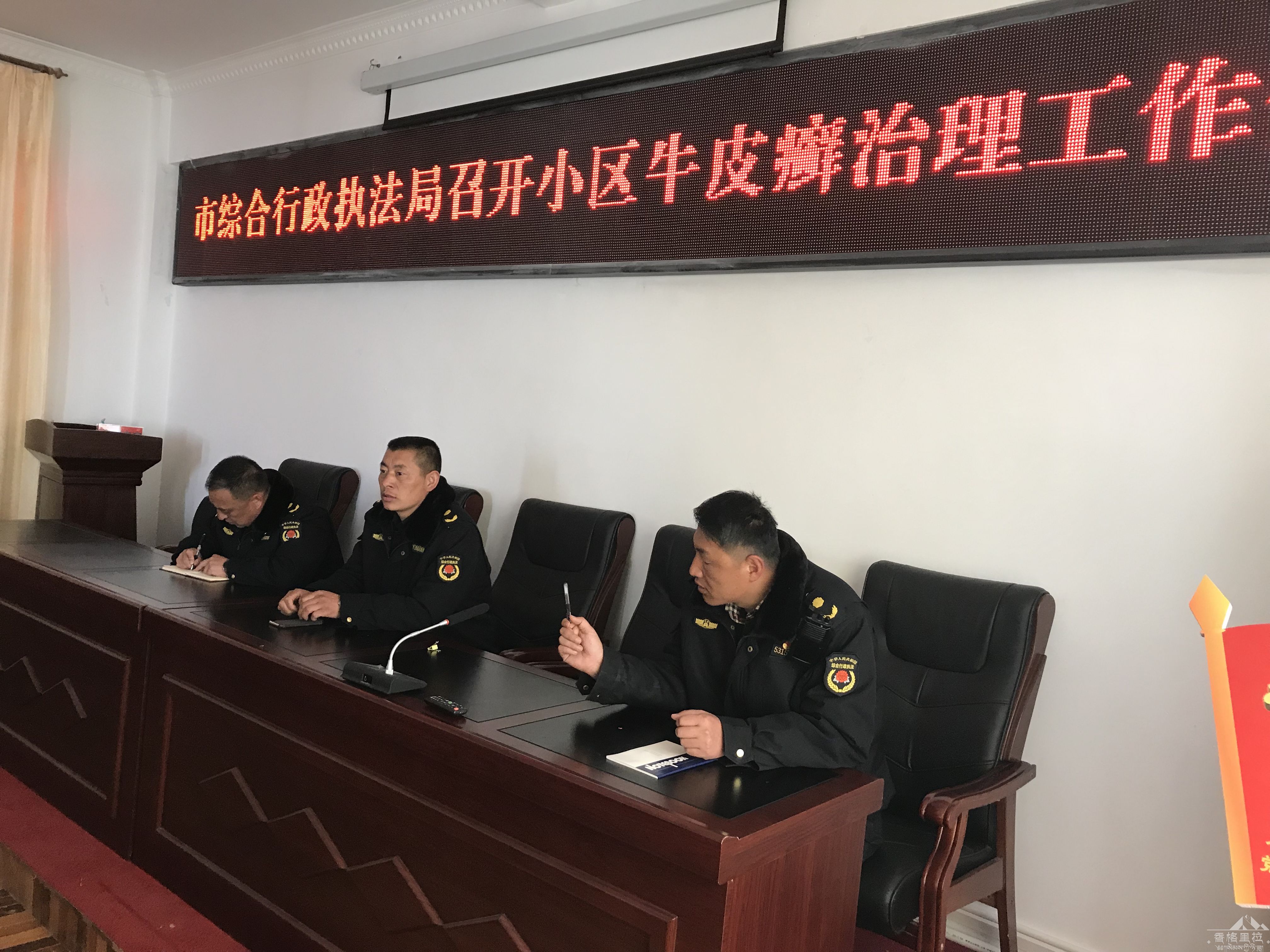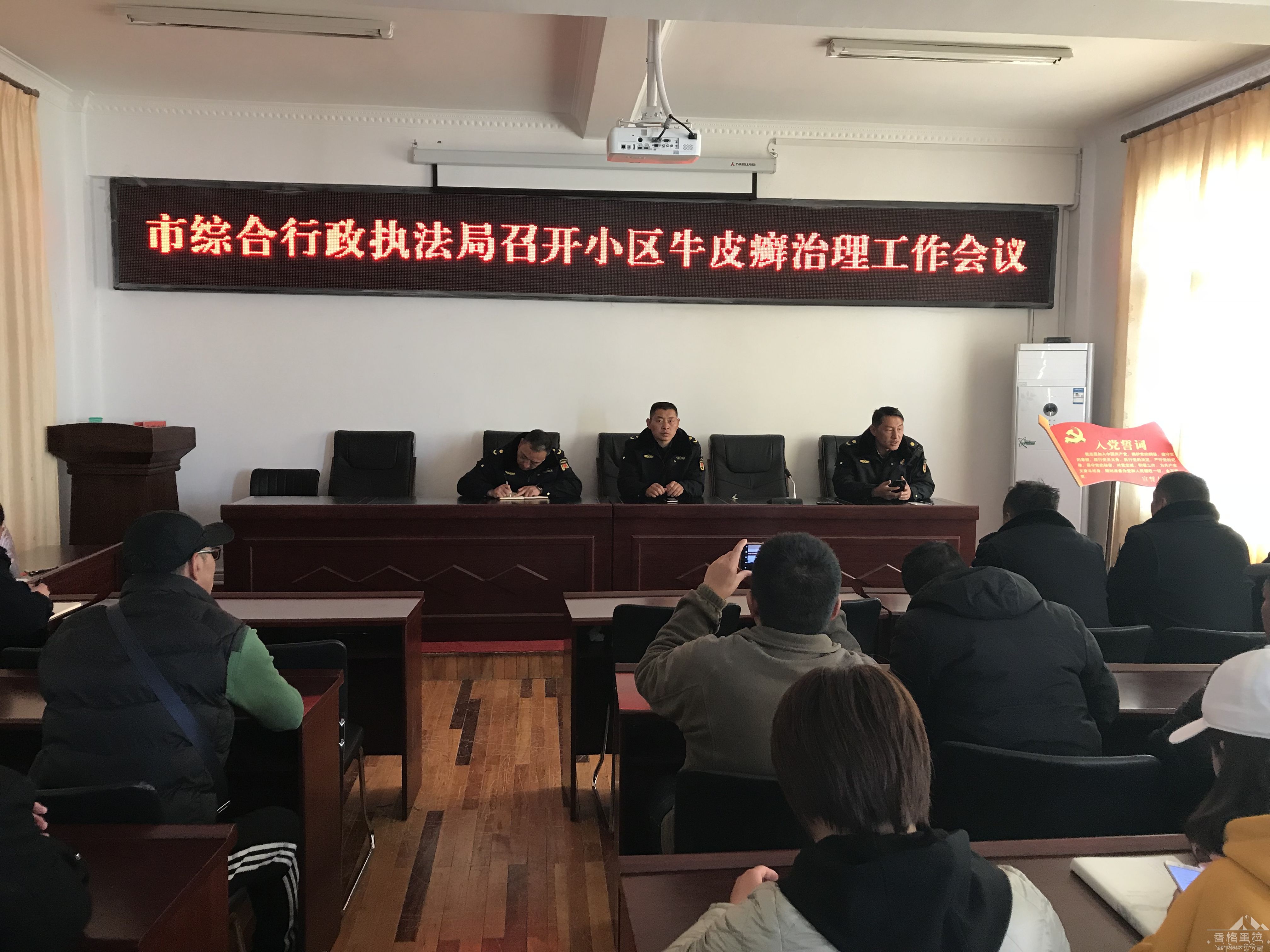 为贯彻落实市委、市政府关于香格里拉市环境综合整治及创建卫生城市的相关精神,全面推进我市的环境综合整治工作,整治“牛皮癣”乱象是工作的一项重要内容,我局在2019年3月14日对全城区内的小区进行了登记通知,共登记通知70个小区,并于2019年3月15日上午10点召开了小区“牛皮癣”治理的工作会议,小区保安及负责人共到会39人,综合行政执法局参会12人。