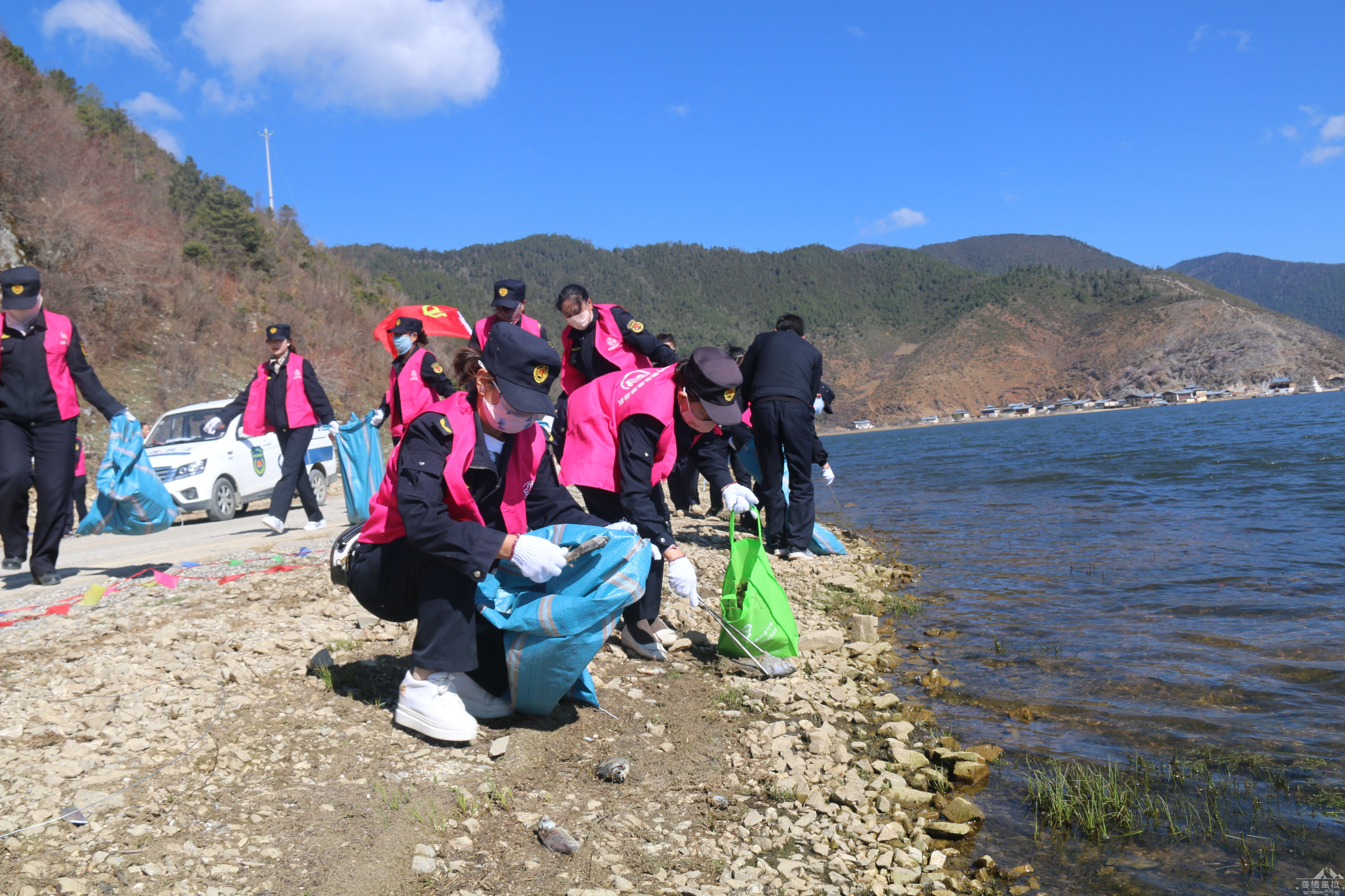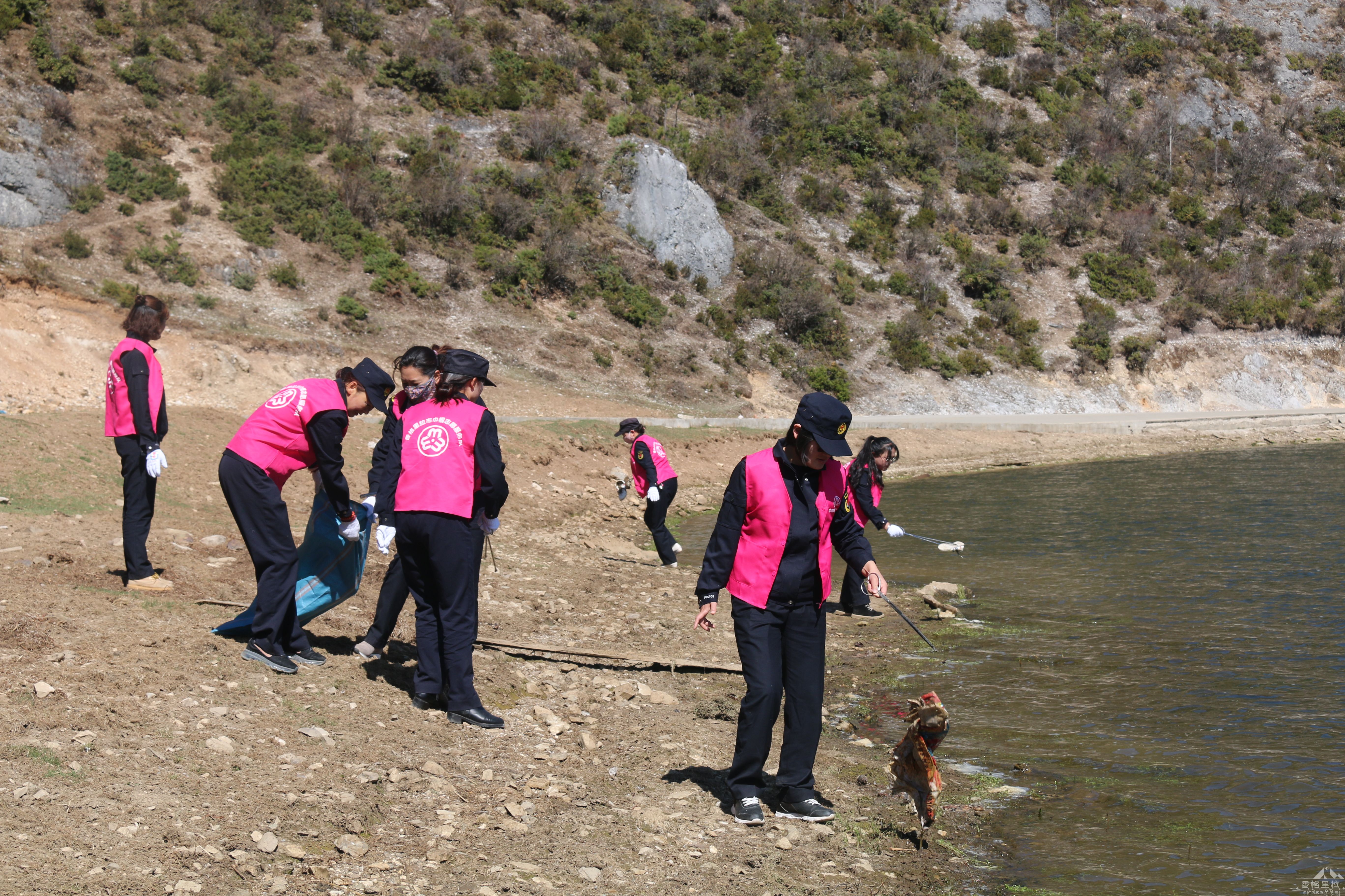 接着党员同志们及巾帼志愿者一同到建塘镇解放村纳帕海环湖路上对道路两旁的垃圾进行清理。一两公里的路程,路两旁只看见丢满了饮料瓶及因湖水褪下后漂浮的死鱼。同志们忍着恶臭,发扬不怕脏、不怕苦的精神,认真仔细的将所有垃圾清理干净。环湖路干净了,环境卫生得到提升,党员活动取得成效。