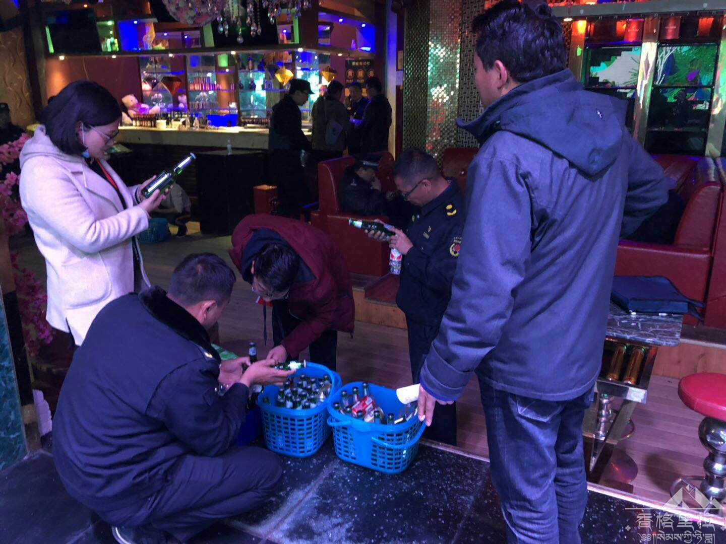 根据市委常委召开的香格里拉市娱乐场所专项整治工作会议的要求,2019年4月11日至14日由我市文化旅游局、市综合执法局牵头,市公安局、市市场监管局、市卫生健康局、州生态环境局香格里拉分局、市住建局、市消防大队配合,对全市范围内的KTV、慢摇吧、演艺吧、演艺中心、娱乐会所等娱乐场所进行摸底调查。通过四天的检查,总计检查酒吧4家、KTV8家、慢摇吧12家、演艺中心6家,其中2家酒吧擅自从事娱乐场所经营活动,一家慢摇吧实际经营者与法人不符,两家慢摇吧无食品经营许可证、无卫生许可证、无消防安全许可证,因存在严重安全隐患,娱乐经营许可证过期、并储存有大量的过期啤酒,有3家KTV及2家演义中心都不同程度存在过期酒水、小食品等违法违规行为市文化和旅游局局长带领相关人员进行文化市场检查