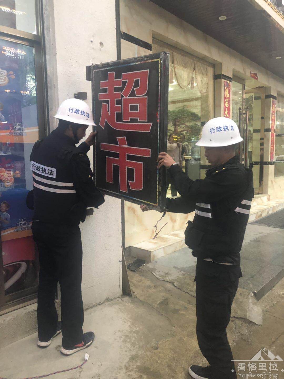 针对这一情况,近期,香格里拉市综合行政执法局组织开展了违规灯箱广告专项整治行动,重点对私设乱设的广告灯箱、发光字牌等进行逐一拆除、清理。