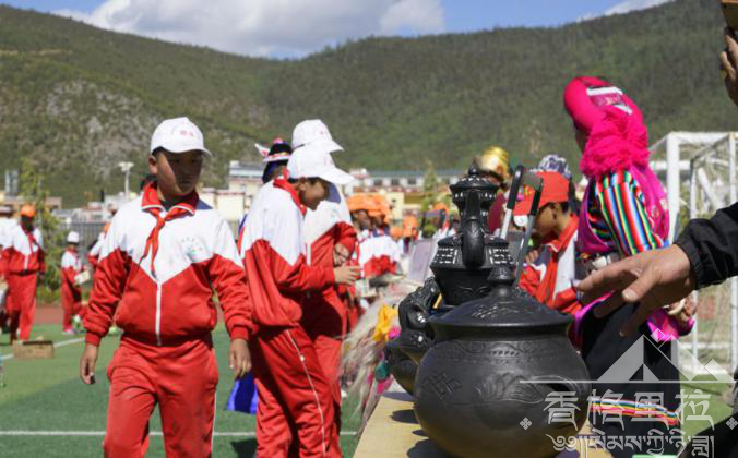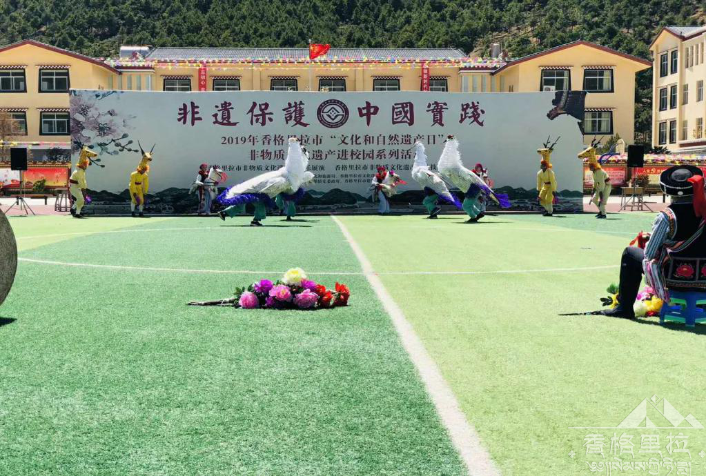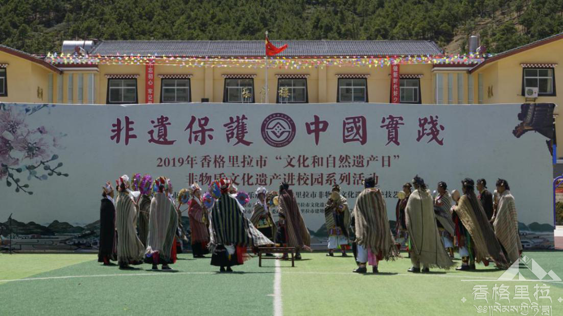 6月6日下午,香格里拉市2019年“文化和自然遗产日”非物质文化遗非遗进校园活动在香格里拉市建塘镇独克宗小学成功举行。此次活动我市挑选了舞蹈、歌曲、器乐类三大类11个精彩原生态歌舞乐节目进校园,发放了文化遗产宣传册,8名非物质文化遗产项目代表性传承人进行了传统技艺展示。独克宗小学的师生们还带来了《舞龙舞狮》、《锅庄舞》节目,同时还进行了非遗知识问答互动,活动取得了圆满成功。