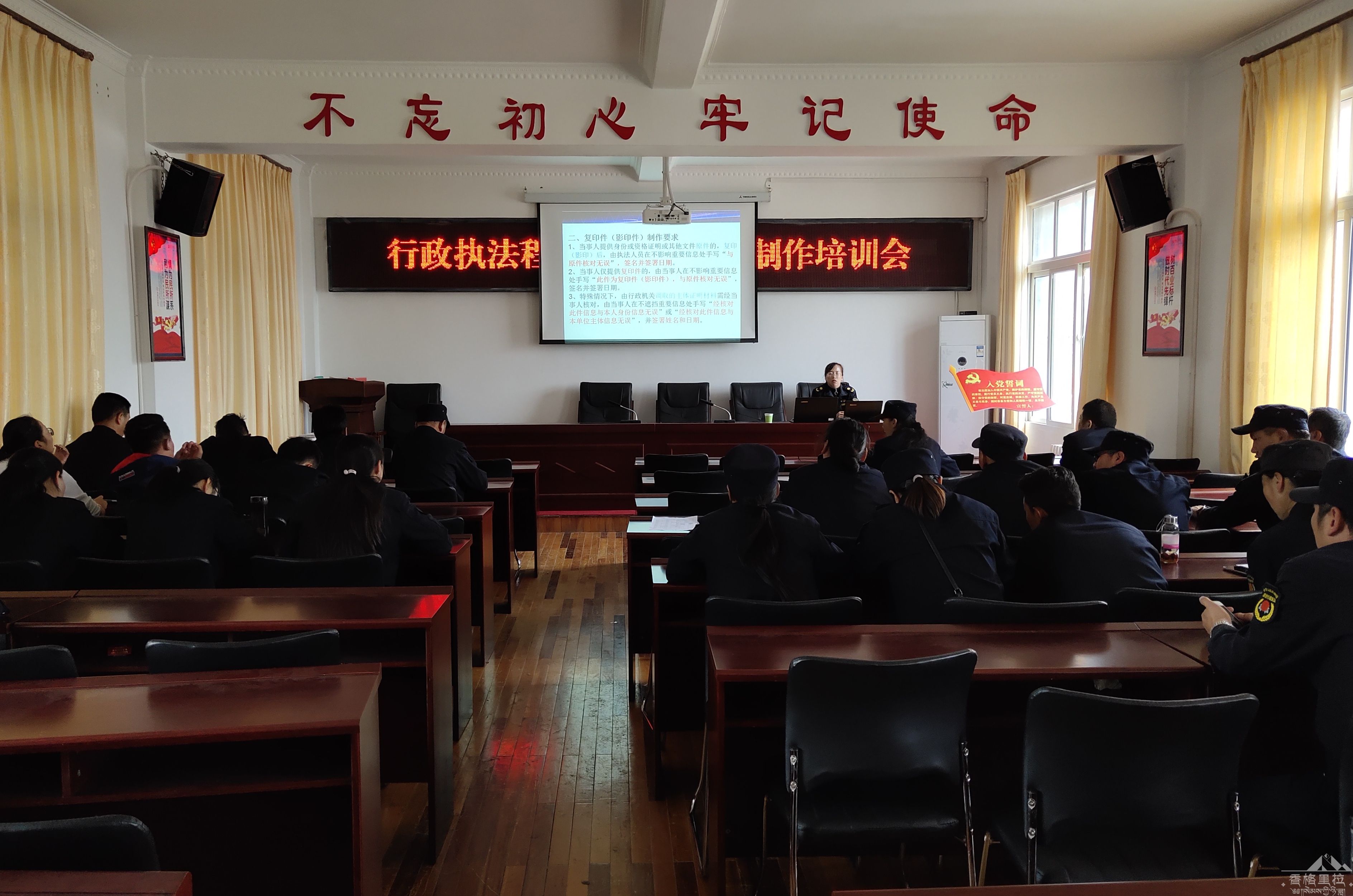 为贯彻落实依法行政,做到严格规范公正文明执法,确保按照法定程序行使权力,更好地发挥我局综合执法作用,提高执法人员素质。2019年7月8日由法规办组织开展“行政执法程序及案件文书制作培训”。