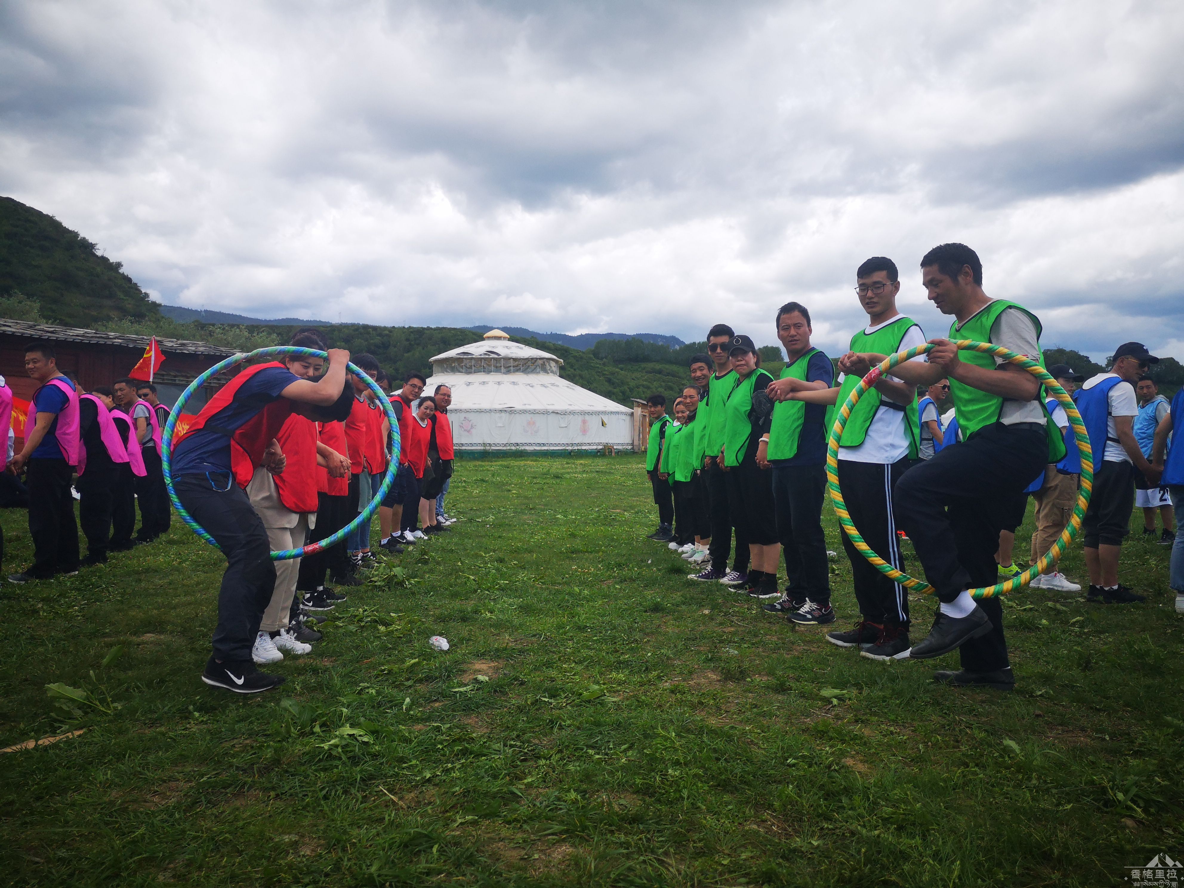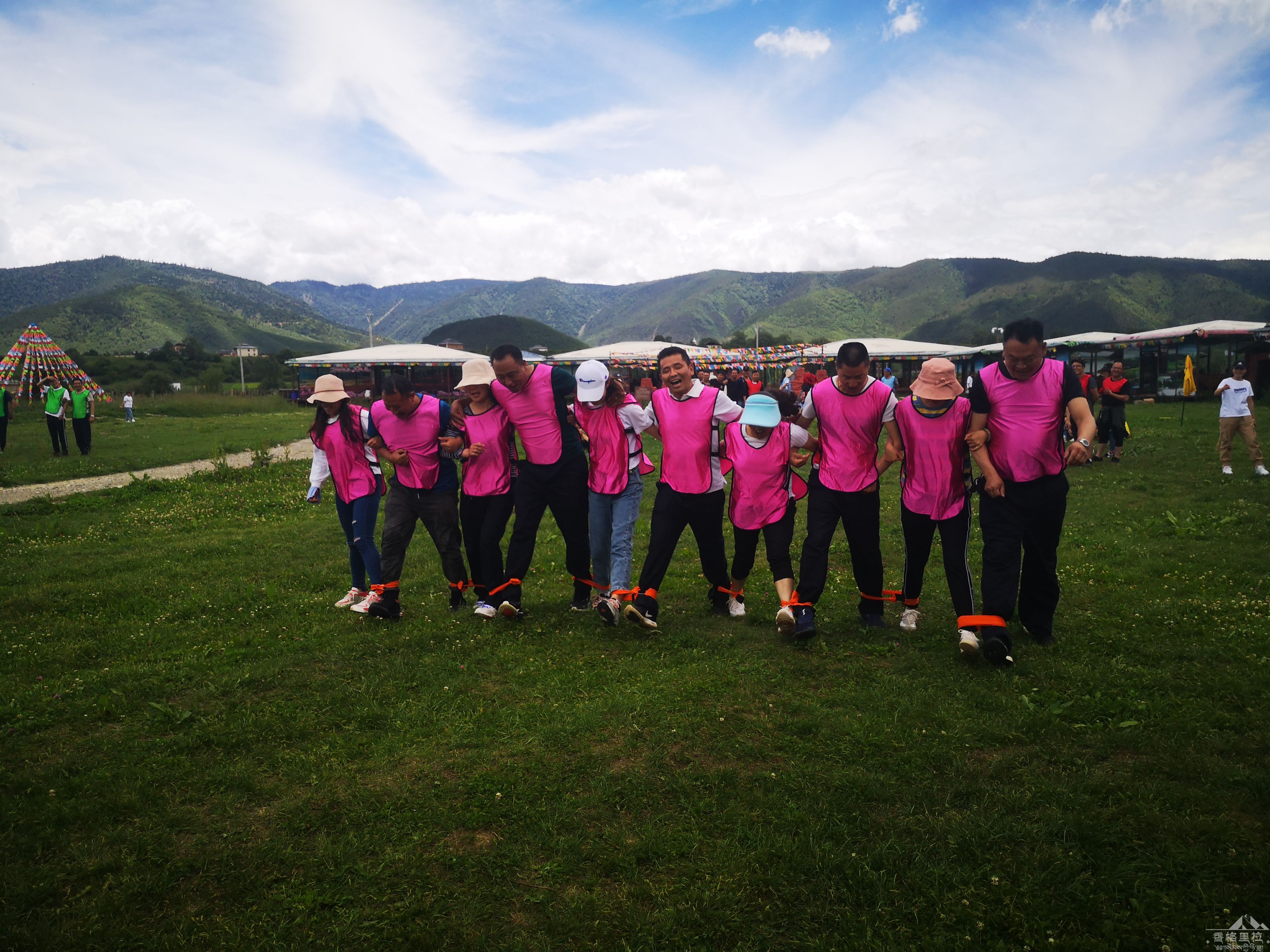 活动内容丰富多彩,绑腿赛跑、衔纸杯运水、抱团、呼啦圈接力、抬杆绕8字跑、袋鼠跳接力赛一项接着一项,活动规则清晰、便于操作,大家每10人为一个队,兴趣浓厚,积极踊跃,配合默契。