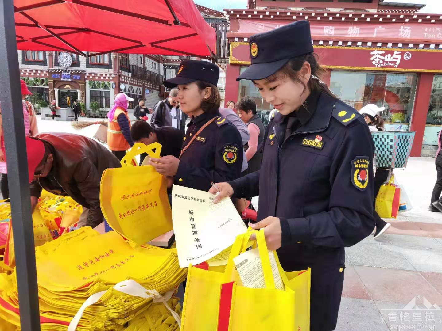 针对香格里拉市城市管理的现状,我局把《迪庆藏族自治州香格里拉城市管理条例》、门前五包责任制和扫黑除恶知识作为宣传的重点,让香格里拉市市民和商户深入了解我们的城市管理工作,让更多的市民积极参与到创建全国文明城市工作中来,确保创建工作顺利进行,创建目标顺利实现。
