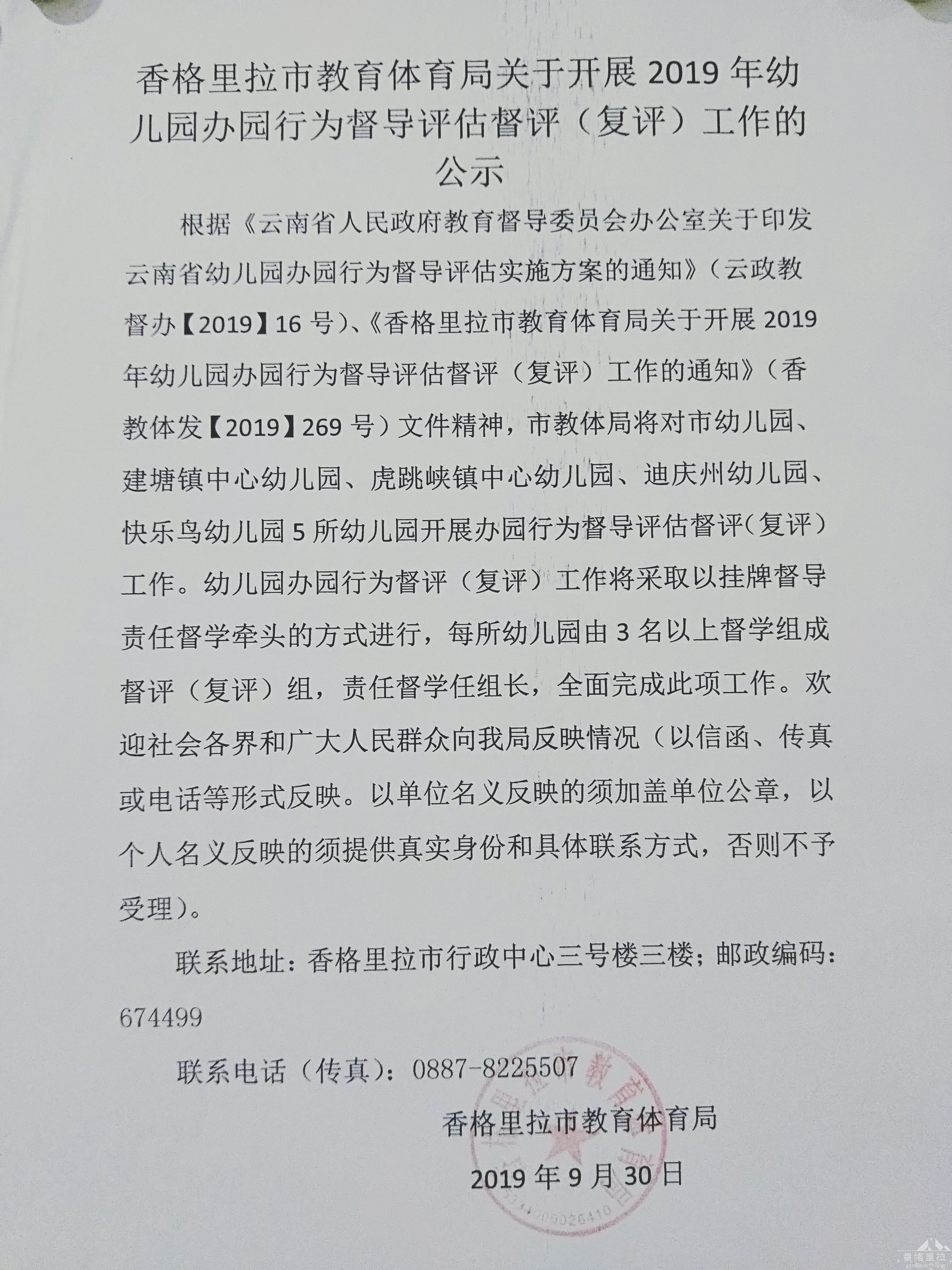 【教育体育局】教体局开展2019年幼儿园办园行为督导评估督复评公示