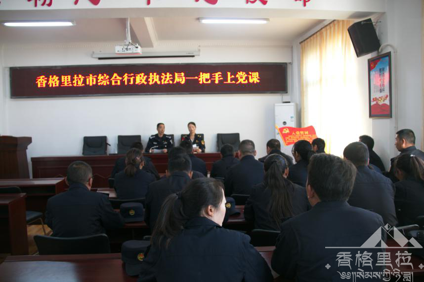 为热烈庆祝中华人民共和国成立70周年,根据《关于深入开展“不忘初心、牢记使命”的主题教育的实施意见》(香发〔2019]11号)文件要求,10月9日,香格里拉市综合行政执法局党支部开展以“学习习近平总书记国庆讲话和学习党史、新中国史”为题的主题党日活动。
