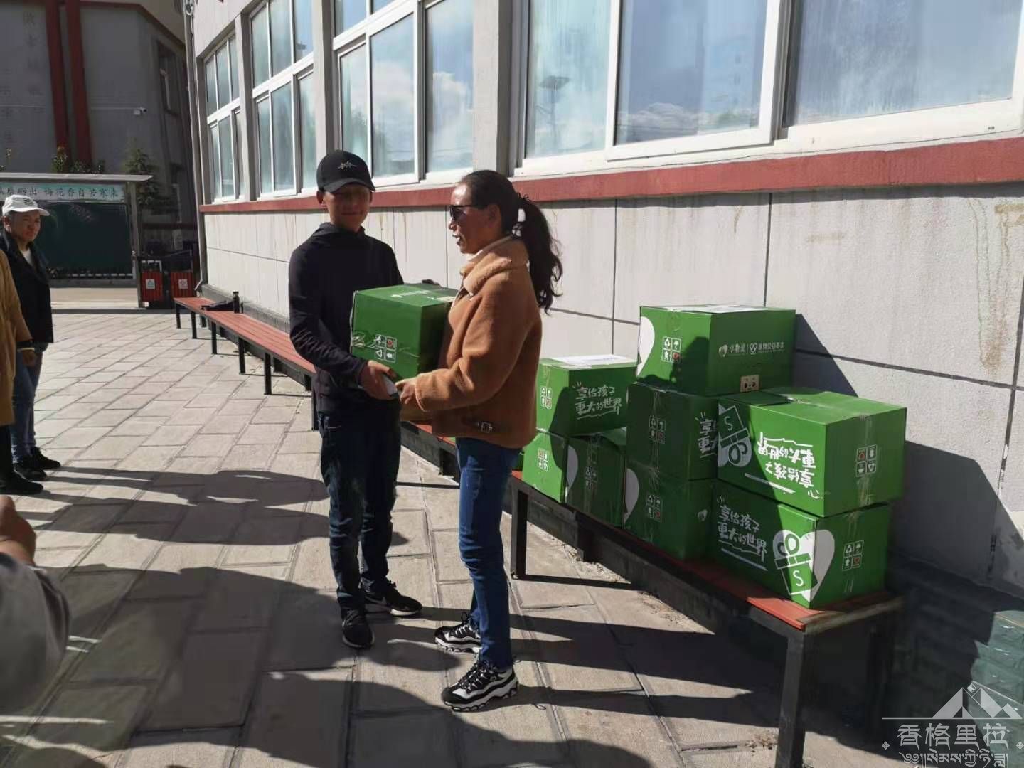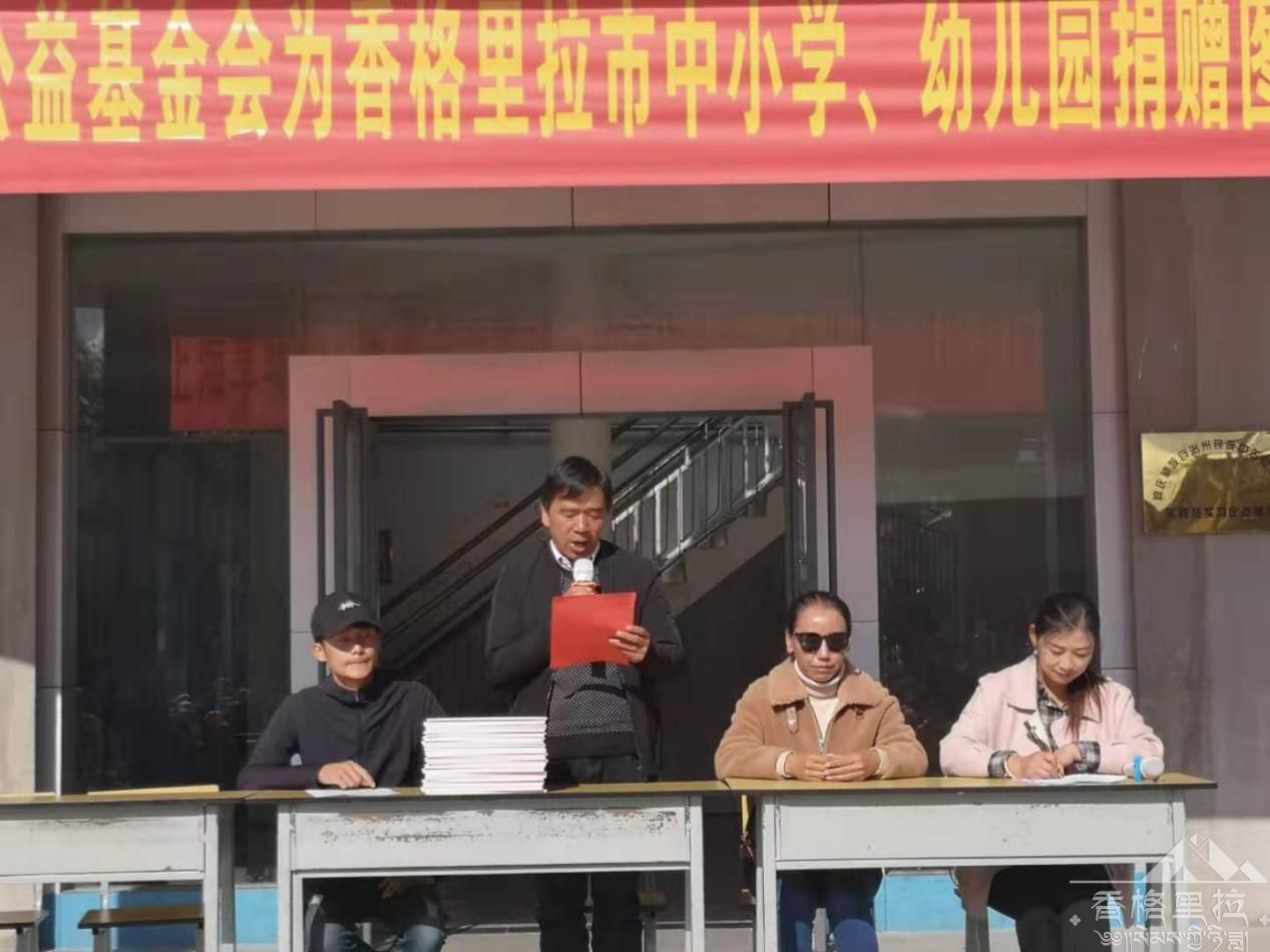 最后,香格里拉市东西部协作办潘杰同志代表上海享物公益基金会在现场向实验小学捐赠图书,徐建英校长根据班级实际又将图书在现场分发给了各班班主任。