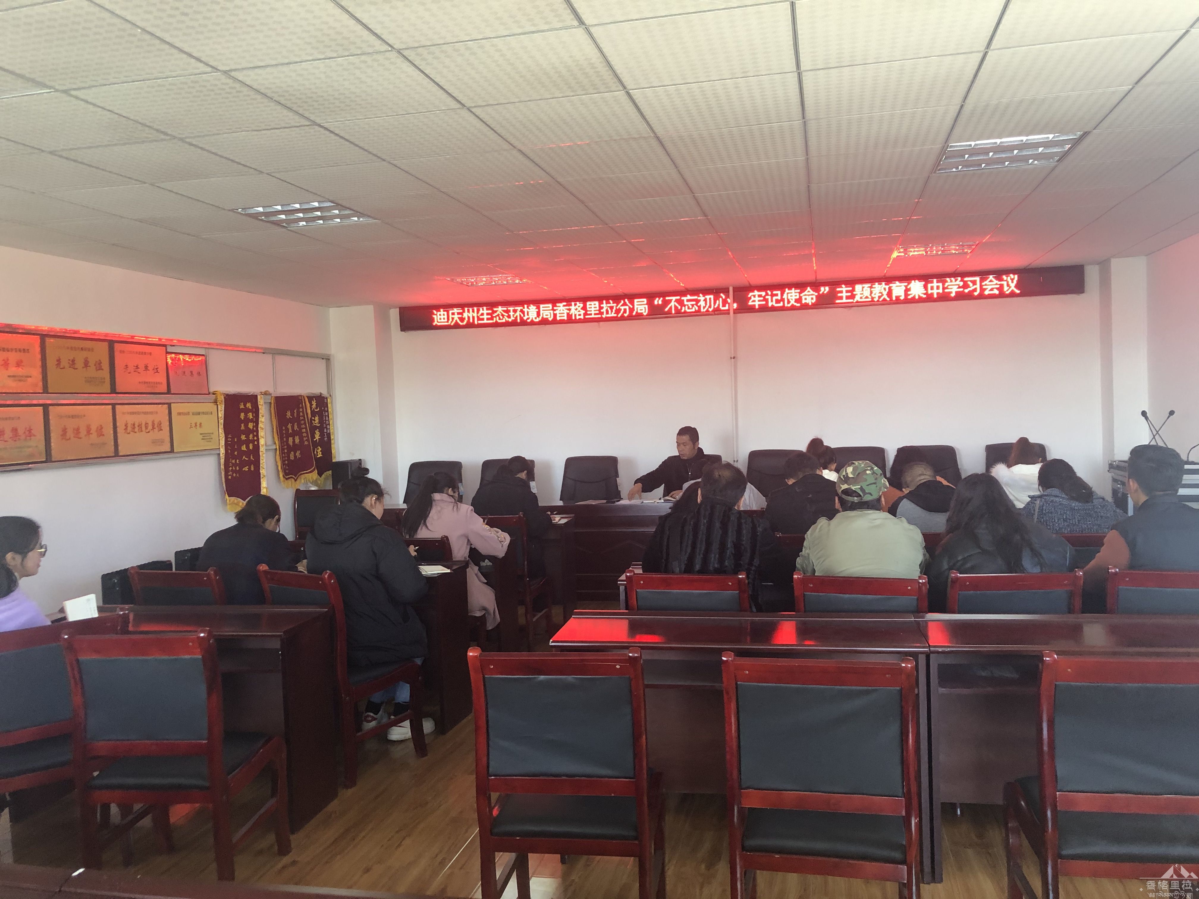 为深入学习贯彻习近平新时代中国特色社会主义思想,扎实开展我局“不忘初心、牢记使命”主题教育工作,2019年11月7日下午14:00,迪庆州生态环境局香格里拉分局召开“不忘初心、牢记使命” 集中学习会议。