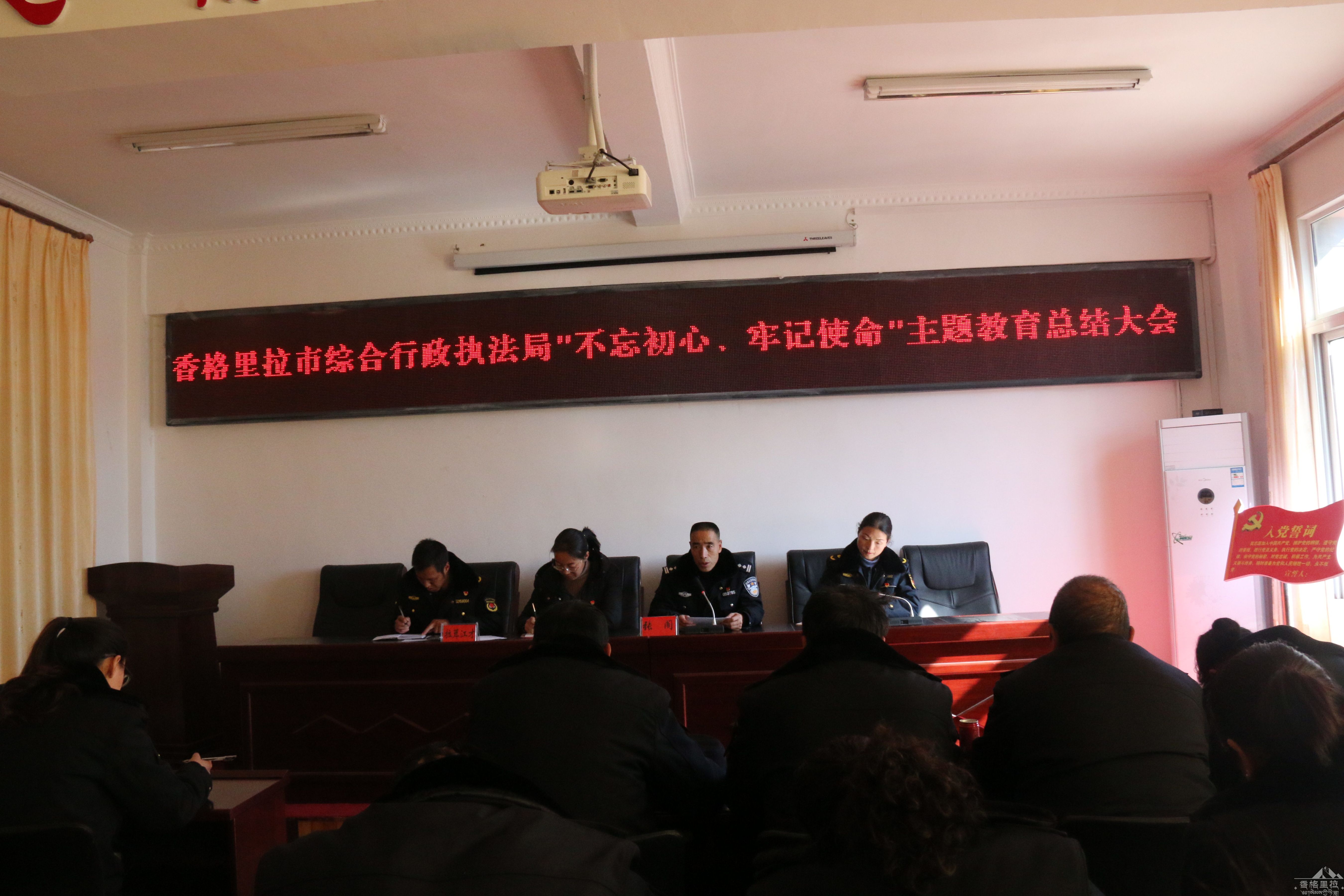 1月14日下午,香格里拉市综合行政执法局召开“不忘初心、牢记使命”主题教育总结大会。大会对开展主题教育开展情况进行了全面总结,对进一步巩固深化主题教育成果进行安排部署。会议由李秋云副局长主持,市委第十指导组齐秀梅同志到会指导。
