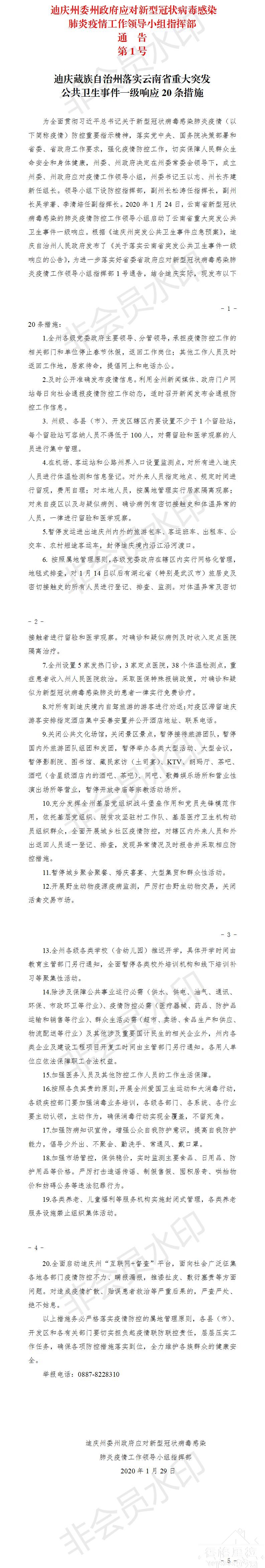 【市政府办】迪庆州落实云南省重大突发公共卫生事件一级响应20条措施