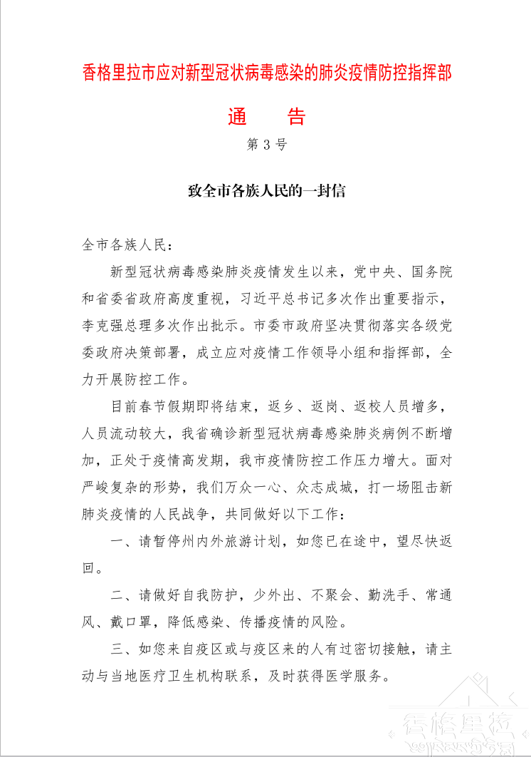 【市政府办】致全市各族人民的一封信