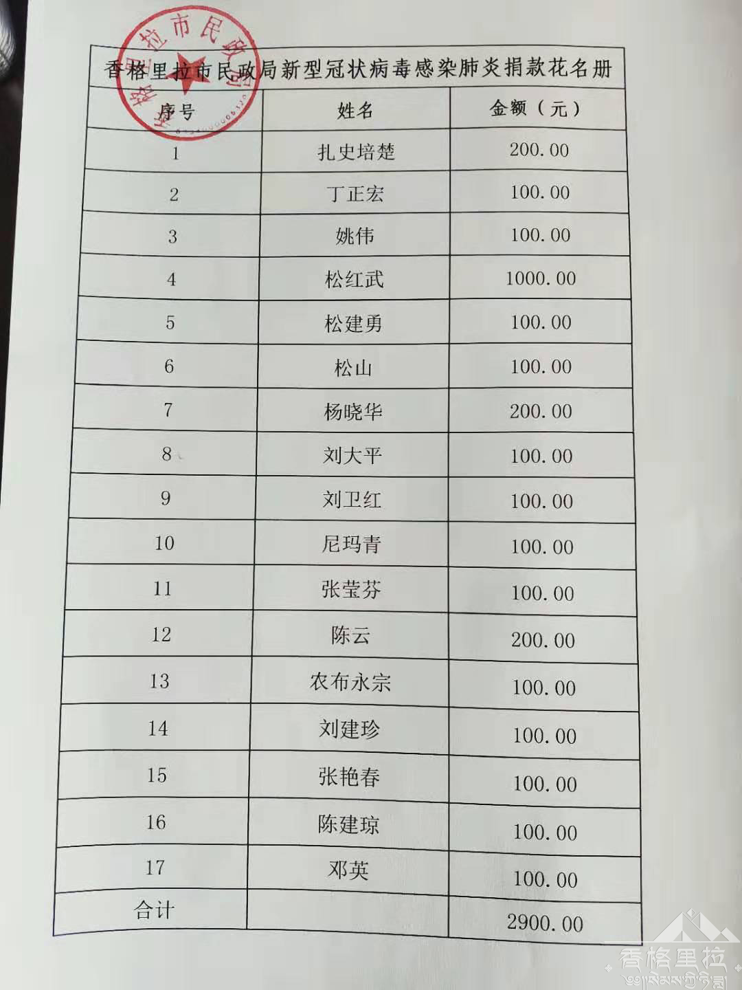 为抗击疫情尽一份微薄之力。近日,市民政局组织干部职工开展自愿捐款活动,全体干部职工纷纷踊跃捐款,共筹集2900元,并及时转入香格里拉市红十字会对公账户中。