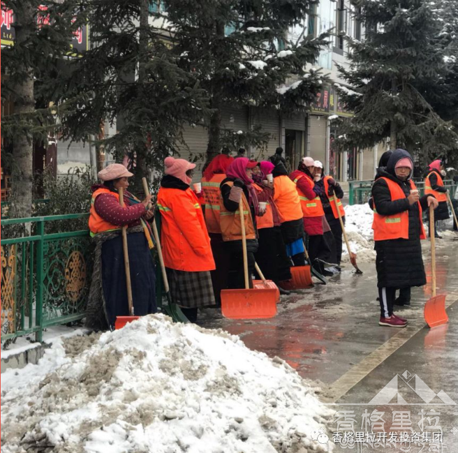 2020年初,几场不期而遇的降温降雪让美丽家乡香格里拉一夜间进入银装世界,雪后美景和干净整洁的街道相互映衬,使香格里拉别有一番景色。 雪色飘洒中,有这样一群人,他们从接到降雪天气预警的那一刻起,便拿起扫帚、铲子随时待命,雪一开始下就迅速投入了清除冰雪的工作中,不畏严寒、坚守岗位、连续作业,用他们的辛苦换来了市民群众出行畅通。
