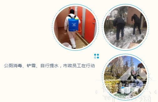 市政公厕消杀、自行供水、保障运行:市政公司积极与疾控中心对接消毒药品,公司自备消毒器材,1月29日开始对城区开放公厕(茶马古道、文明广场、廉政广场、长征泵站公厕)进行消杀工作,每天清洁、消毒双推进。大部分公厕出现断水现象,公司自行购置水桶及水瓢,组织公司职工取水补给及铲雪除冰,并在公厕内粘贴宣传标语,保障公厕的正常使用。