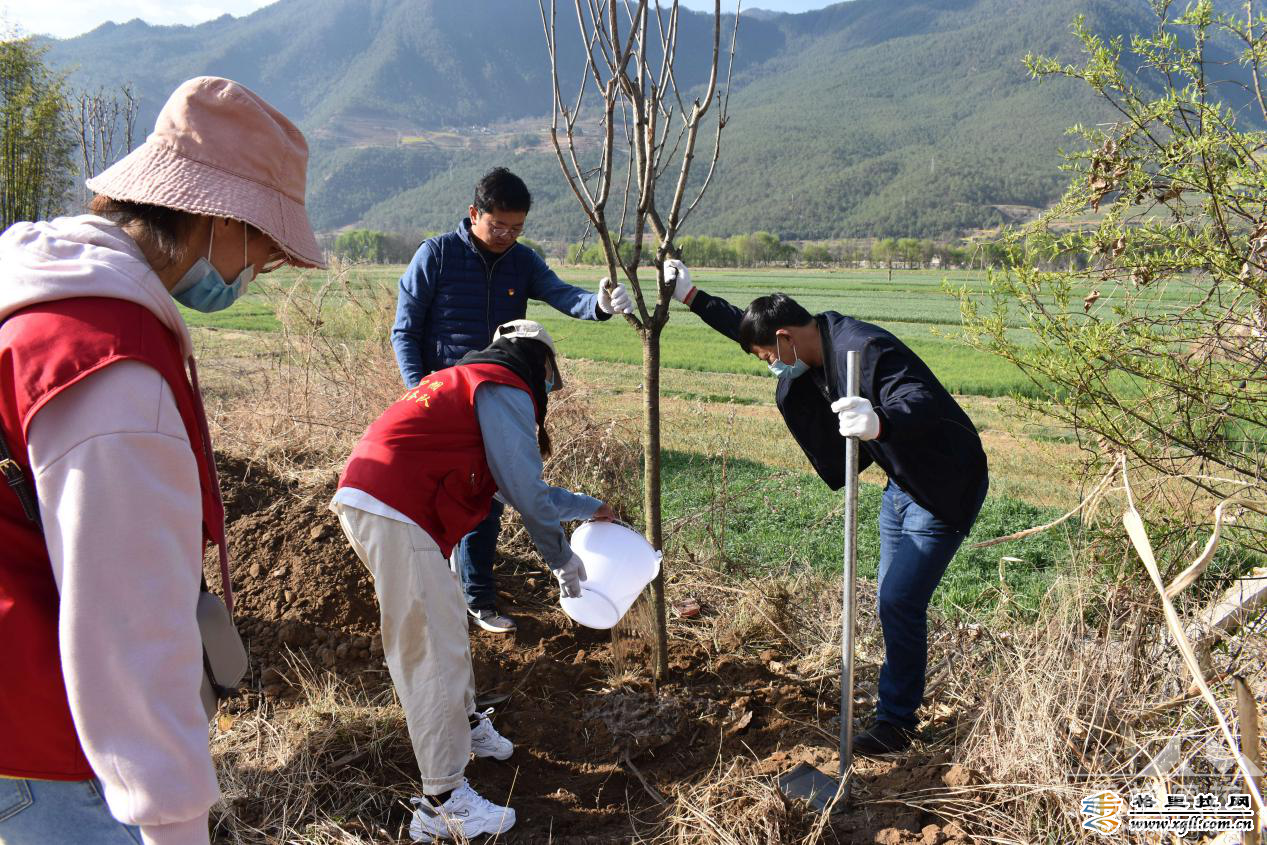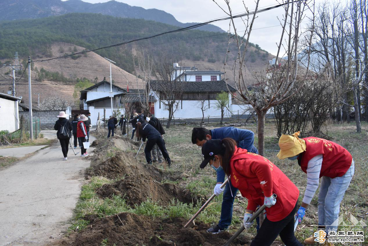 ▲金江镇干部职工、千促工作队员、群众、巾帼志愿者义务植树美化环境