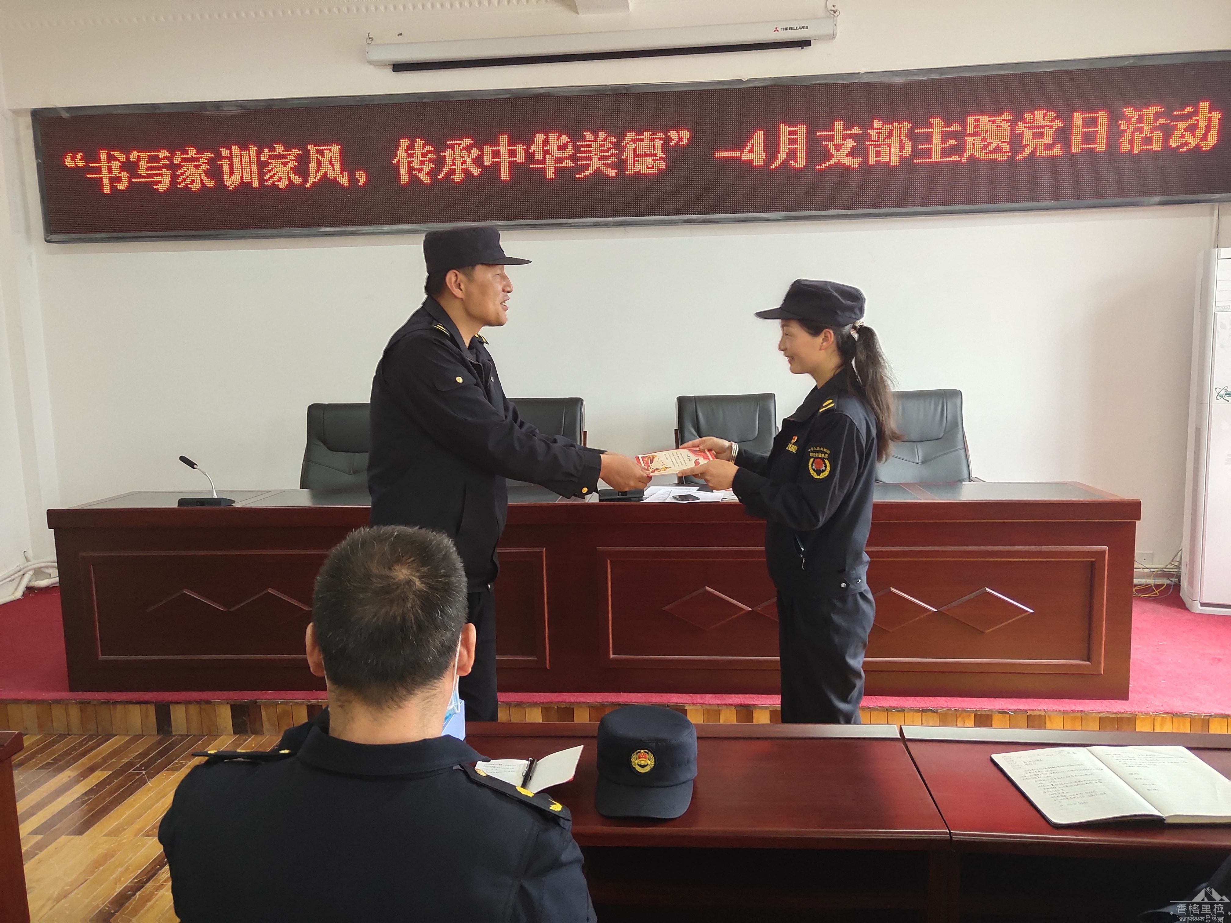 为进一步践行社会主义核心价值观,弘扬家庭传统美德,传承良好的家教家风家训。4月17日,香格里拉市综合行政执法局党支部组织开展“书写家训家风,传承中华美德”为主题的4月支部主题党日活动。