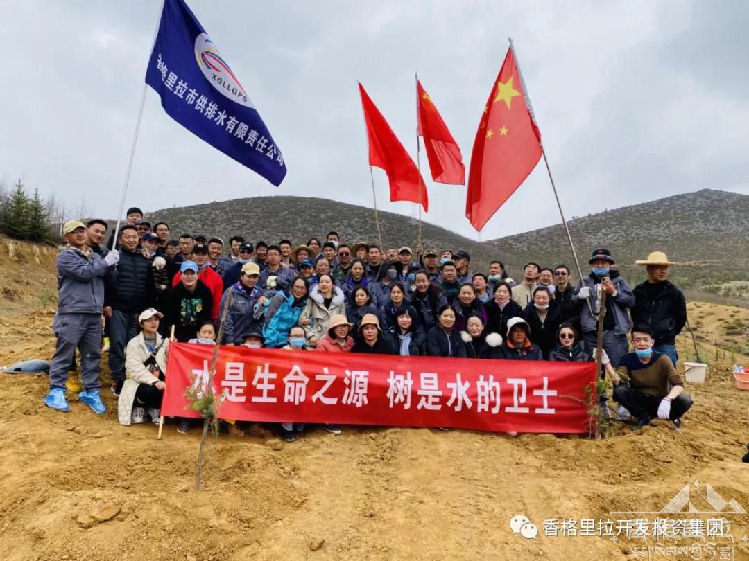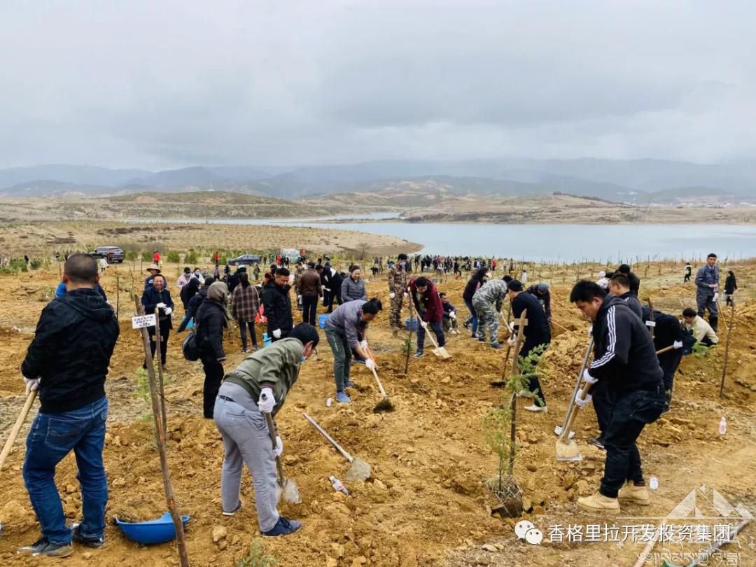 2020年4月29日上午,香格里拉市开发投资集团有限公司全体党员及干部职工与供排水有限责任公司干部职工共同到桑那水库旁进行义务植树活动。
