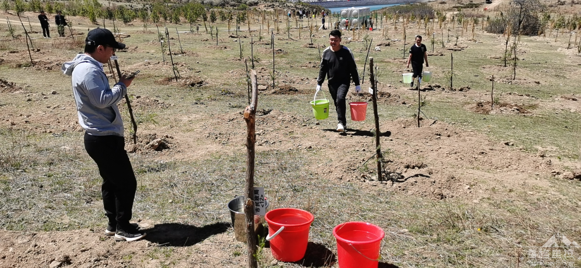 截至目前,香格里拉市民政局共出动16人,6辆车,已经对62棵新种绿化树木进行浇水,用水500立方米。