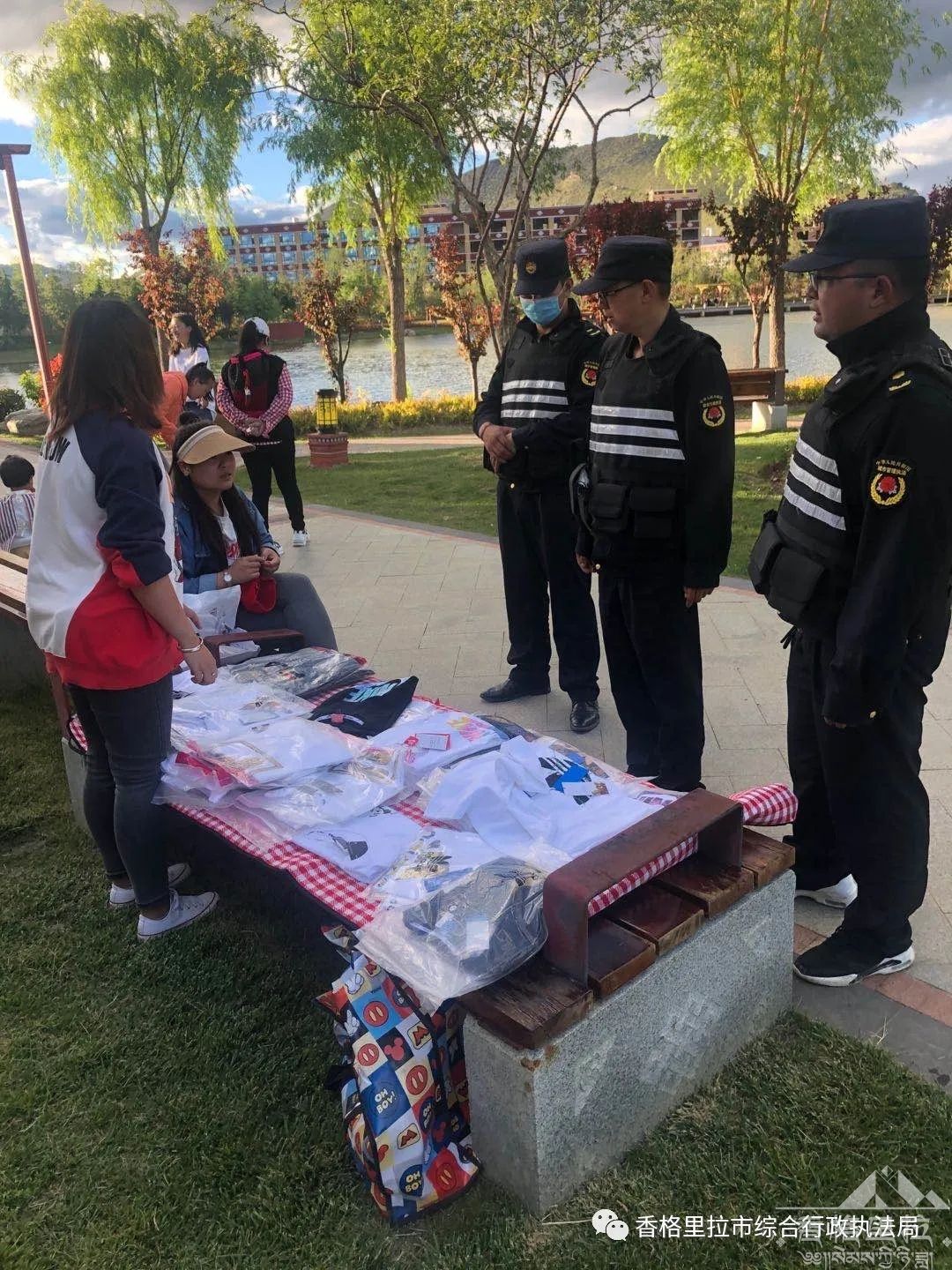 近日,天气回暖,香格里拉市公园、广场人员增多,为全力做好新型冠状病毒肺炎疫情防控工作,减少人员聚集,认真落实州、市新型冠状病毒感染的肺炎疫情防控指挥部部署及各项指令要求,6月18日,在斯那扎史副市长的带领下,香格里拉市综合行政执法局、市住建局迅速行动,科学制定疫情防控工作方案,积极开展疫情防控宣传,不断强化市容环境卫生整治,不断加强公园、广场等人流密集场所的防控,全力开展疫情防控工作,保障人民群众身体健康与生命安全。