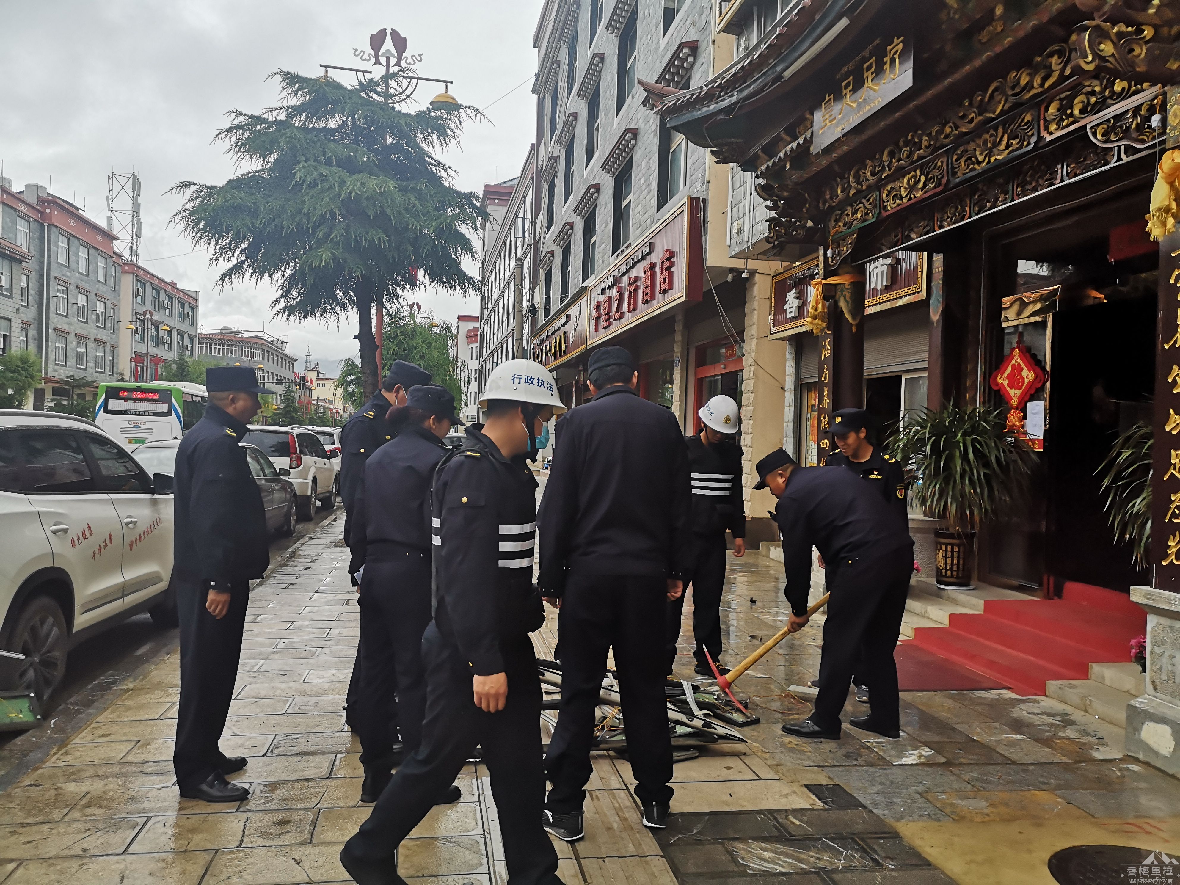 7月2日,香格里拉市综合执法局城管大队组织执法力量对无视责令限期整改通知书的此商户进行强制拆除,以此告诫广大商户要“知法、懂法、守法、用法”。