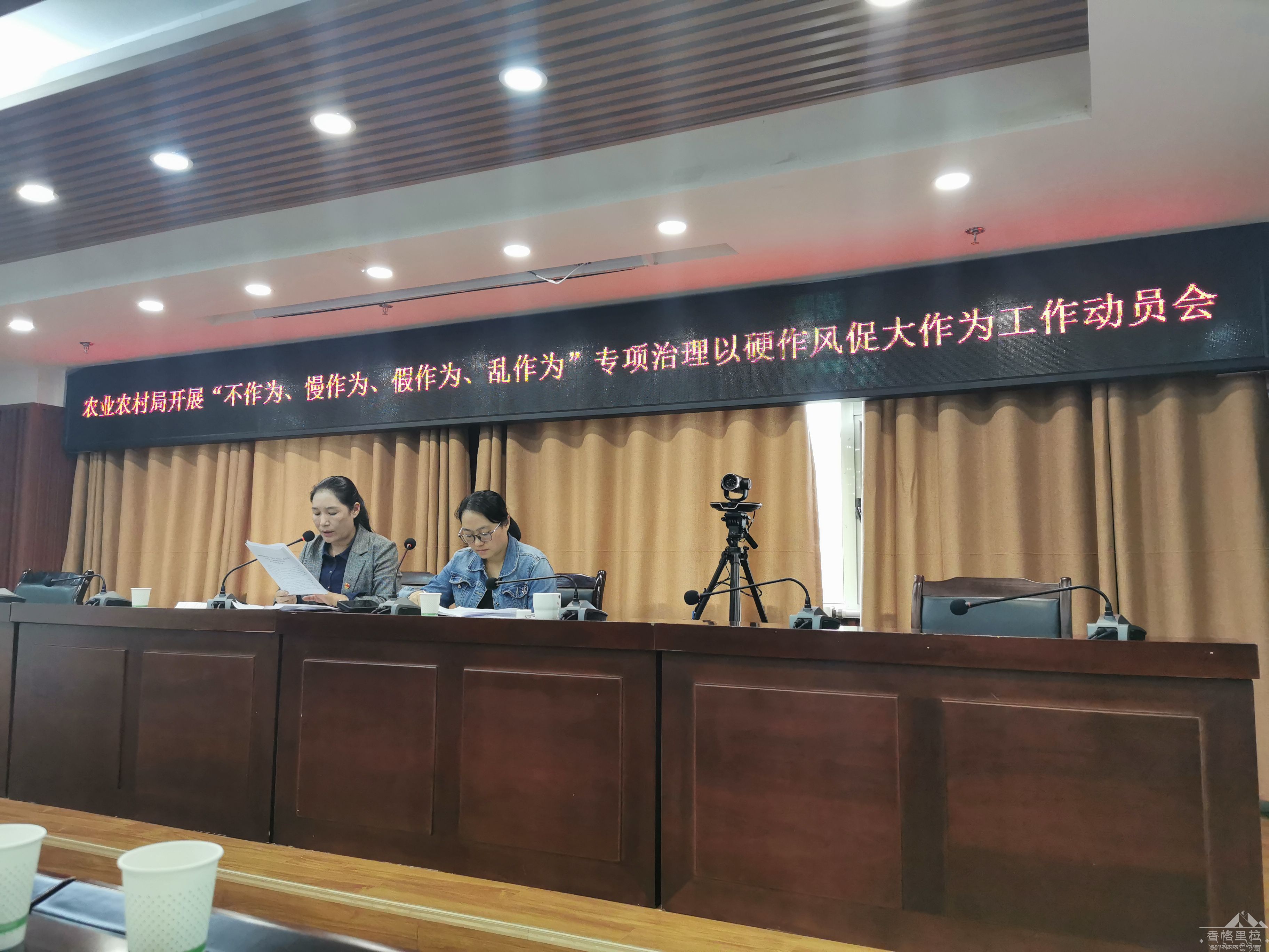7月21日下午,市农业农村局召开开展“不作为慢作为假作为乱作为”专项治理以硬作风促大作为动员会,对专项治理工作进行动员部署。农业农村局党委委员、副局长和毅芳传达了市委文件精神并对专项治理进行具体安排部署。