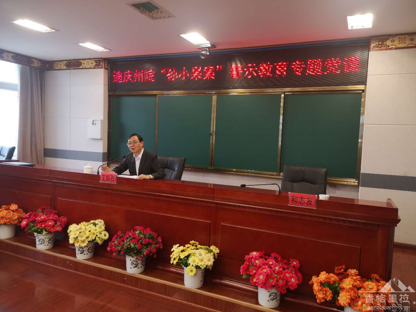 结合我院庸懒散乱专项整治活动,7月16日上午,我院党支部组织全体党员到迪庆州人民检察院参加“孙小果案”警示教育专题党课,党课由州院党组书记、检察长王凯石讲授。