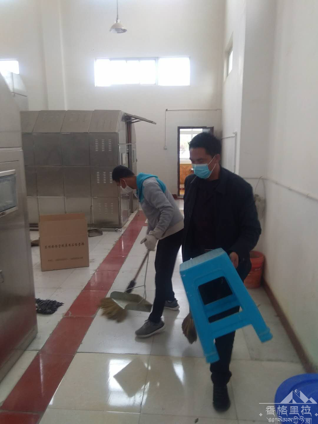 疫情期间,香格里拉市殡仪馆在馆长和副馆长的带领下,认认真真清理殡仪馆的每个车间和机器及外围环境清理、消毒。