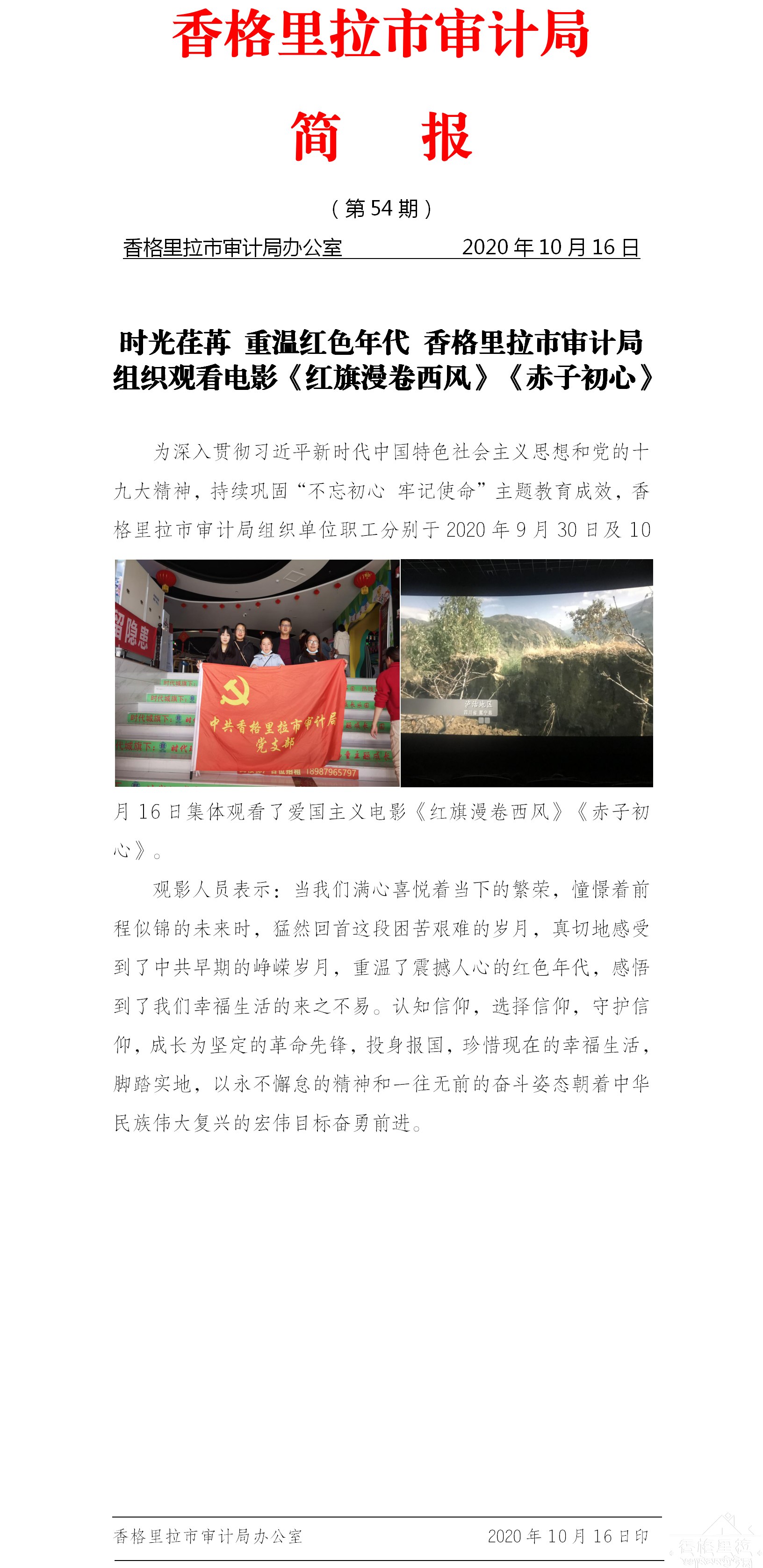 【审计局】时光荏苒 重温红色年代 香格里拉市审计局组织观看电影《红旗漫卷西风》《赤子初心》