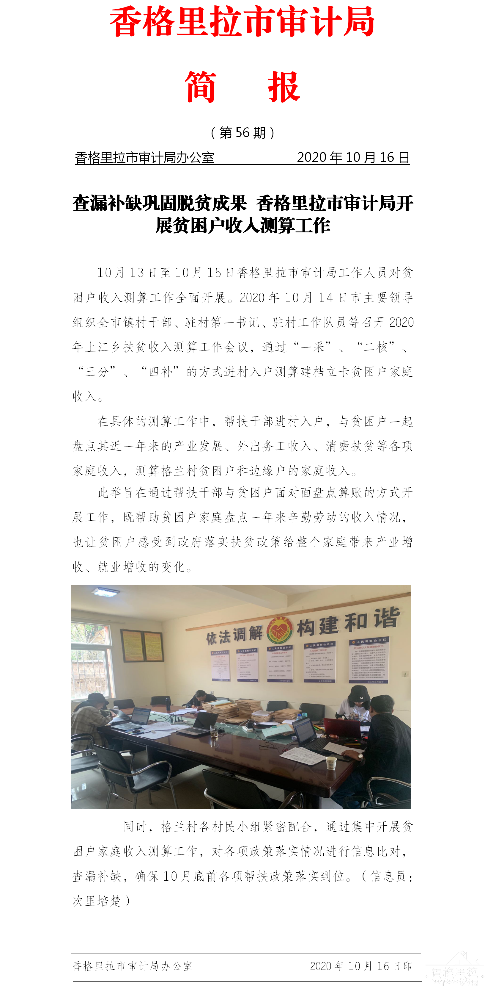 【审计局】查漏补缺巩固脱贫成果 香格里拉市审计局开展贫困户收入测算工作