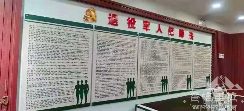 一、在行政中心办公楼的大厅展播宣传标语;在市退役军人服务中心专设一面文化墙,展印《保障法》全文。