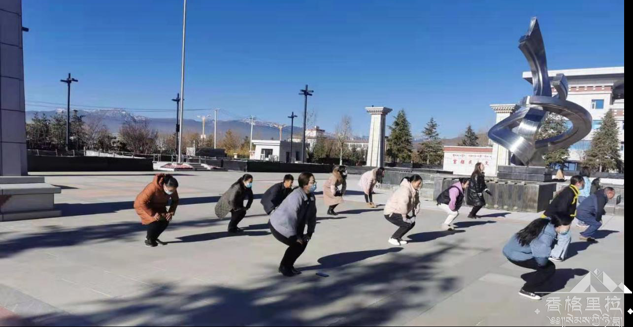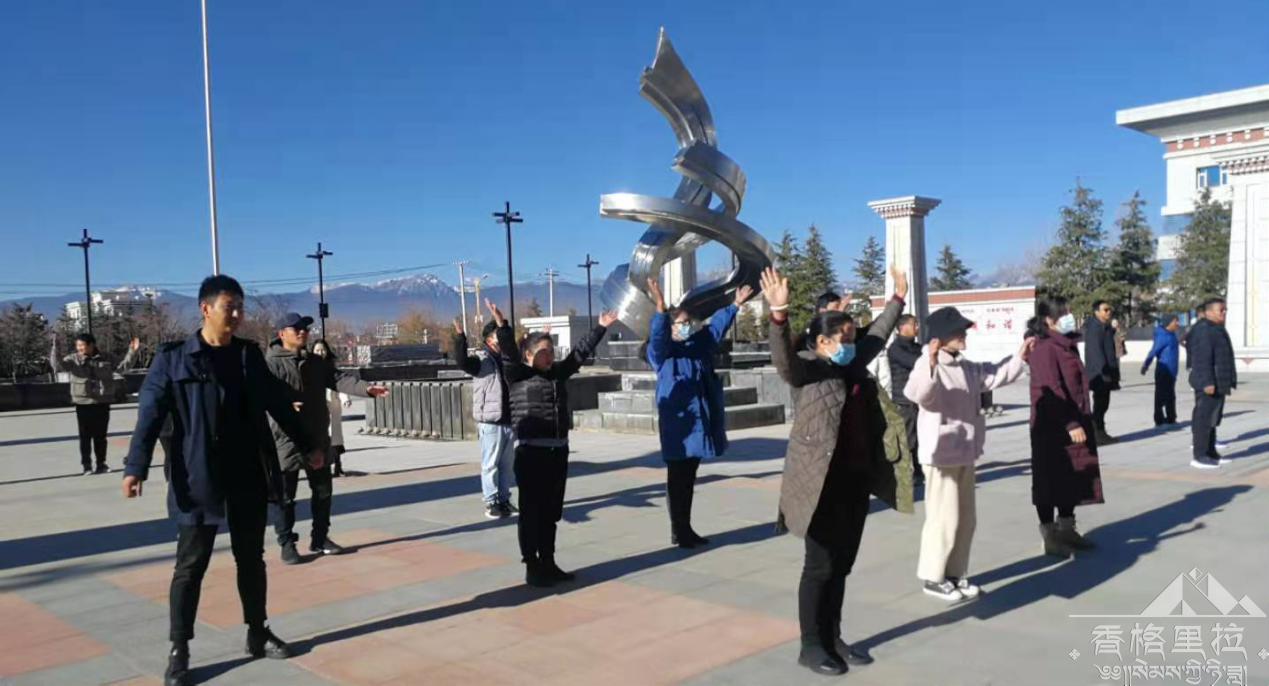 香格里拉市民族宗教事务局组织在家干部职工开展工间操活动