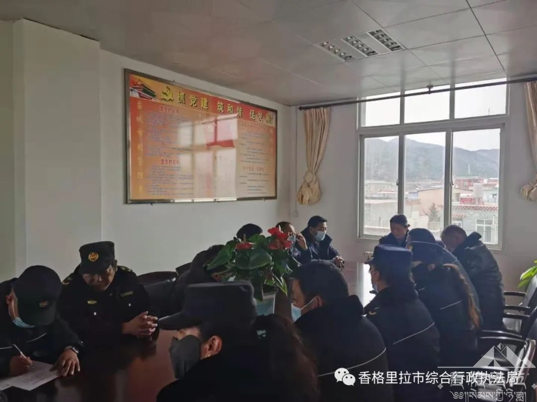 2021年春节将至,为繁荣节日市场,规范城市管理秩序,同时做好疫情防控工作,维护良好的市容市貌环境。1月21日上午,由香格里拉市综合行政执法局牵头,召集建塘镇解放村小街子、从古龙一、二小组小组长及翁嘛措物业公司主要负责人召开了关于2021年春节民俗摆设工作协调会。