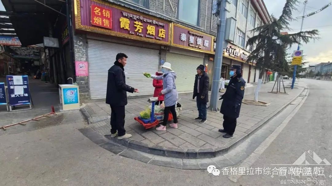 香格里拉市综合行政执法局春节值班工作人员坚持站好春节假期最后一班岗,继续开展城市管理巡查和监管工作。一是做细做实城市管理绣花功。一组值班人员在城市中心向阳农贸市场值守,进行全面的执法巡查,发现问题,及时处置,对街面乱设乱摆摊点、占道经营、店外经营,进行有效管理。做到全方位、全覆盖、无死角。二组值班人员做好城市外围巡逻,在城郊结合部排查环境卫生死角及消防安全隐患工作。对“城市牛皮癣”、使用明火等问题,久抓不懈,磨砺一以贯之的韧劲,做好市容管理常规工作。