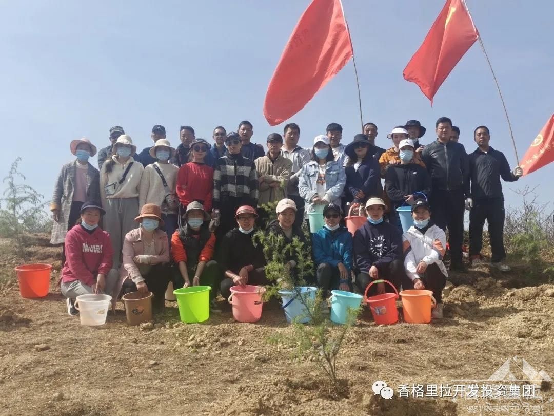 4月30日上午,香格里拉市开发投资集团有限公司在赵治洋董事长的带领下组织全体员工到桑那水库旁开展义务植树活动。