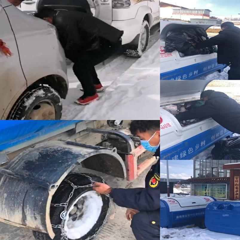 近日,香格里拉连降大雪,冰雪层厚、道路湿滑,部分村(居)民小组车辆无法通行,大雪天气加大了我镇垃圾清运工作难度。为解决垃圾清运这一难题,镇执法中队加班加点,想尽办法做好辖区农村生活垃圾清运工作,在确保安全的前提下,采取给垃圾清运车辆安装防滑链等措施,安全到达清运中转地,全力保障辖区农村生活垃圾转运工作。
