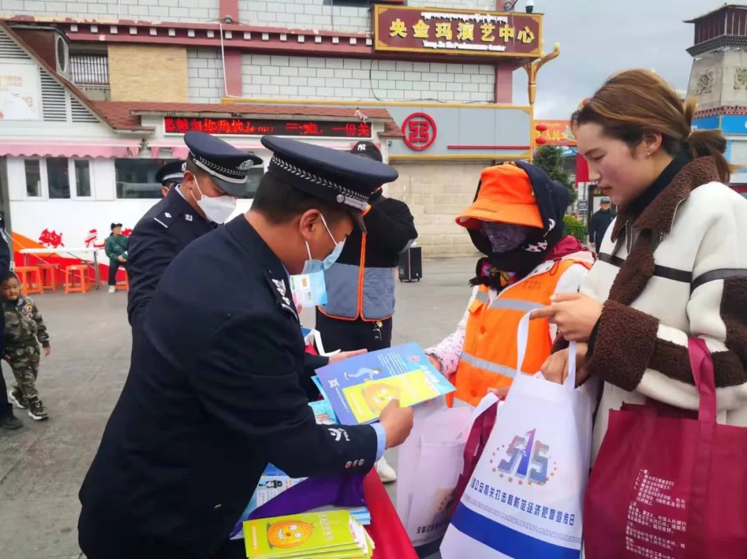 香格里拉市公安局各乡镇派出所也同步开展了主题宣传。此次活动共发放防范信用卡诈骗、防范非法集资、防范传销、识别假货币、防范银行卡诈骗等宣传手册30000份,对有疑问的咨询者现场解答400余人次。通过发放预防经济犯罪传单和现场宣传解答,有效提高了辖区群众识假防骗能力,进一步增强了警民携手共创平安的良好氛围,取得了较好的社会效果。