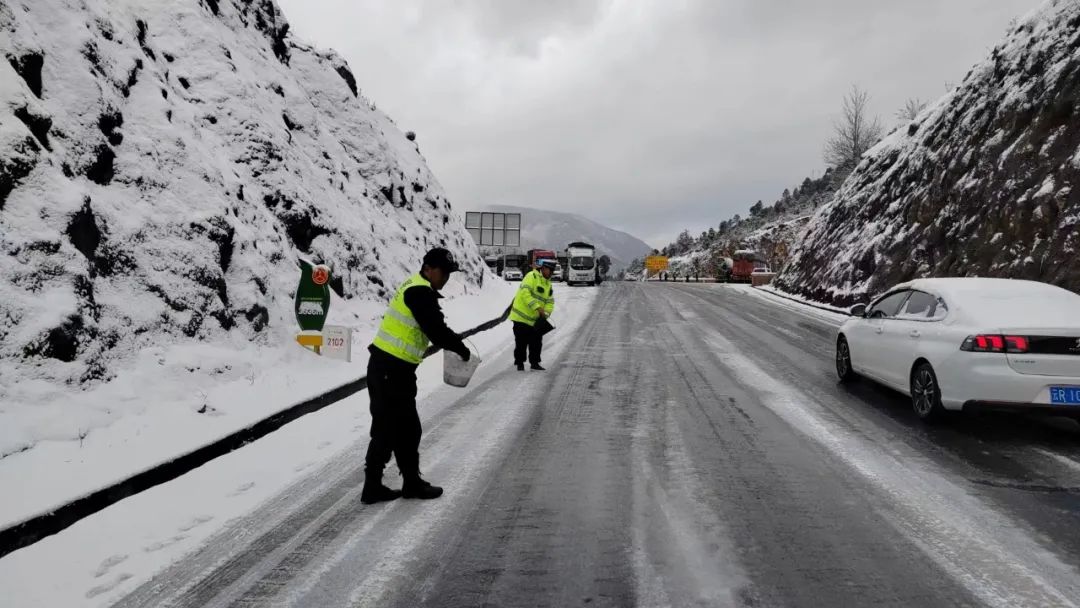 近日,香格里拉市出现大雾冰雪天气,给行车带来一定的安全隐患,香格里拉市公安局交警大队、直属城市交警大队、各乡镇交警中队全面加强破冰融雪、隐患排查等应急保障工作,力保辖区道路平安畅通。