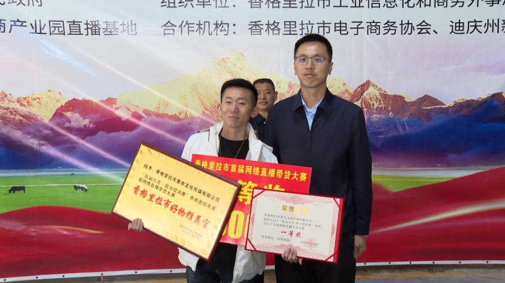 7月21日,2023年“风动六月·助力促消费”香格里拉市首届网络直播大赛活动举行闭幕式及颁奖仪式。香格里拉市香农文化传媒有限公司获得一等奖,并授予“香格里拉市好物推荐官”荣誉称号。