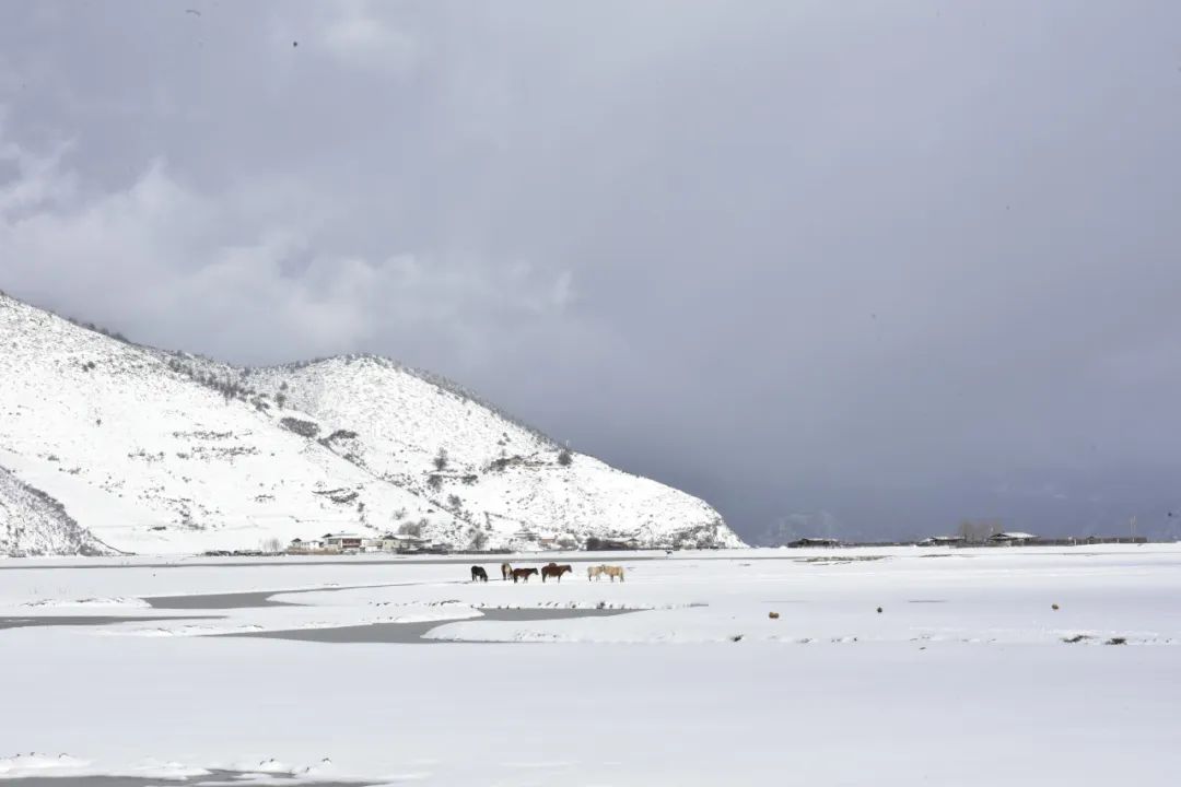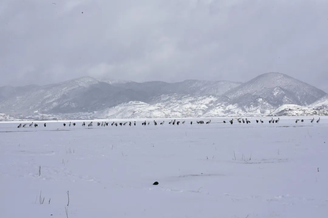 12月14日,香格里拉迎来入冬以来最大的一场雪,纳帕海国际重要湿地银装素裹,成群结队的黑颈鹤在雪中嬉戏,成为一道格外靓丽的风景线。