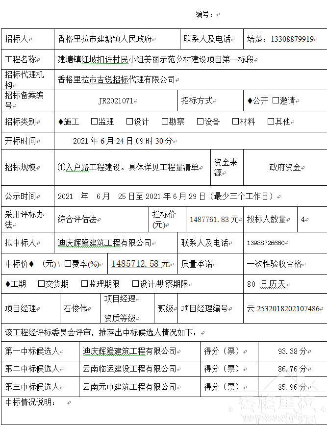 香格里拉市人民医院10KV配电安装工程及安装材料采购项目中标公告