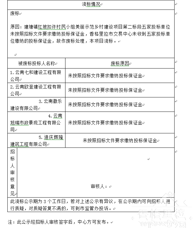 流标公示表