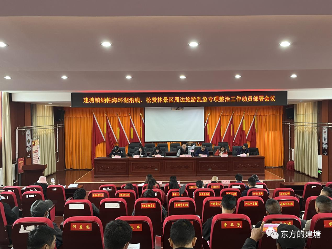 为贯彻落实《香格里拉市纳帕海环湖沿线、松赞林景区周边旅游乱象专项整治工作方案》文件精神及7月27日香格里拉市旅游乱象整治工作专题会会议精神,进一步规范旅游市场秩序,明确目标、夯实责任,坚决治理旅游市场乱象,确保全镇旅游业持续健康快速发展。7月31日,建塘镇组织召开纳帕海环湖沿线、松赞林景区周边旅游乱象专项整治工作动员部署会议,会议由建塘镇党委副书记、镇长扎西巴丹同志主持。市级各职能部门,建塘镇各相关责任领导,相关村(社区)“两委”,尼史村、解放村各村民小组长及马场经营者参加了会议。