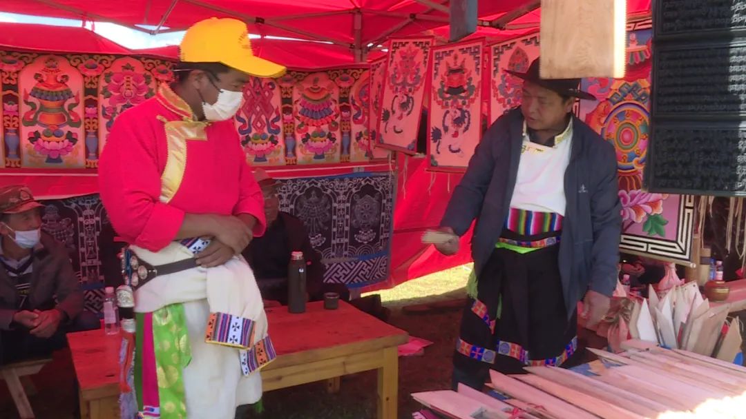 现场,村民们搭起帐篷,身着盛装,欢聚一堂。文艺汇演内容丰富、形式多样,热烈奔放的舞蹈,优美动听的歌曲及情景剧等节目,让现场观众不断鼓掌喝彩。帐篷前还展出了非物质文化遗产各类元素及当地特色产品等,引来不少群众和游客前来观赏。
